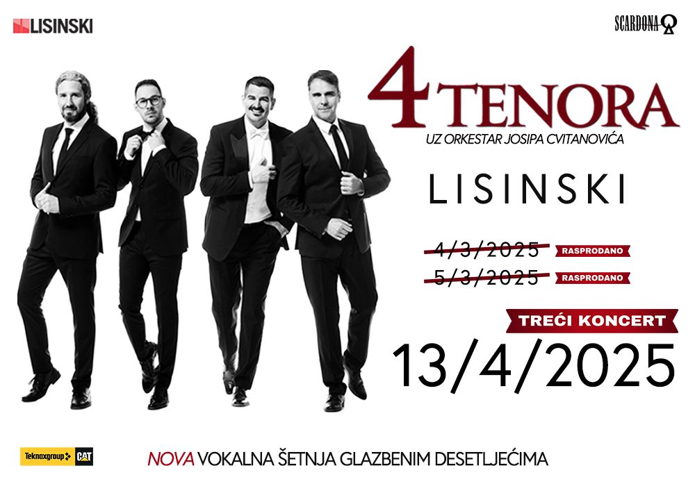 Nakon što su koncerti 4. i 5. ožujka rasprodani u rekordnom roku, 4 Tenora najavila su i treći koncert "Nove vokalne šetnje glazbenim desetljećima" – u Lisinskom su i 13. travnja!