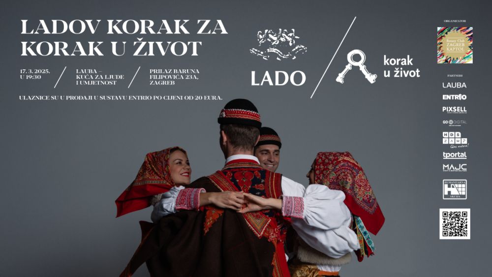 Ansambl narodnih plesova i pjesama Hrvatske LADO u suradnji s Rotary klubom Zagreb Kaptol, već drugu godinu za redom, priprema veličanstveni humanitarni koncert bogatog repertoara pod nazivom "Ladov korak za Korak u život". Ove godine će se plesni spektakl legendarnog ansambla održati u ponedjeljak, 17. ožujka u zagrebačkoj Laubi – kući za ljude i umjetnost, s početkom u 19:30 sati, a kao i lani, sav novac prikupljen od prodaje ulaznica bit će uplaćen na račun akcije “Korak u život”, za stipendiranje mladih studenata bez odgovarajuće roditeljske skrbi.