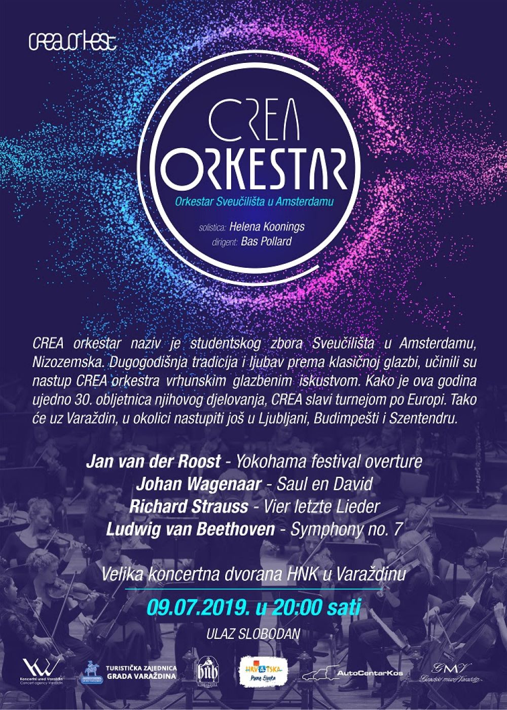 CREA orkestar, 9. srpnja, u Velikoj koncertnoj dvorani HNK u Varaždinu Podijeli: Tweet U Velikoj koncertnoj dvorani HNK u Varaždinu, 9. srpnja, u 20 sati nastupa CREA orkestar. Riječ je o studentskom zboru Sveučilišta u Amsterdamu, koji ove godine slavi 30. obljetnicu i na europskoj je turneji.Ulaz je slobodan. Najnovije vijesti Hrvatsko-češko društvo obilježilo 100. godišnjicu Sjednica Vlade: Poslijepotresna obnova - završeno 14.050 postupaka obnove, izgrađeno 466 obiteljskih kuća JHELENA Vrhunski koncert u Velikoj koncertnoj dvorani HNK u Varaždinu Otvoren novi laboratorij za graditeljstvo u Varaždinu: Učenicima omogućeno učenje temeljeno na radu uz suvremenu opremu Kolumne U žarištu - Odabir prioriteta postaje imperativ Kišni kolovoz turizmu nameće nove izazove U kojoj mjeri koristimo turističku ponudu kulture Zaostajanje u industrijalizaciji i tehnologiji Hrvatska (sama) kreira svoju budućnost Intervjui Rudi Grula - Međimursku popevku 8. studenoga predstavljamo u Bečkom Musikvereinu, dođite i budite dio povijesti Razgovor s Markom Miljanićem, legendarnim ratnim zapovjednikom Julienne Bušić hrvatsko-američka književnica, prevoditeljica i esejistica govori o svom književno-publicističkom radu, disidentima... Razgovor s Jadrankom Fatur u povodu izložbe u Galeriji Kovačić - Macolić u Varaždinu Blogbusters Sramotni zastupnici i sramotne rasprave pojedinih zalutalih političara Američko ministarstvo poljoprivrede zračno pušta cjepiva protiv bjesnoće EU priprema mirovni plan za Ukrajinu u 12 točaka Ruski prodor u središte Pokrovska, strateškoga grada Ukrajine – hoće li to probuditi zapadne saveznike da pomognu žrtvi ruske agresije?