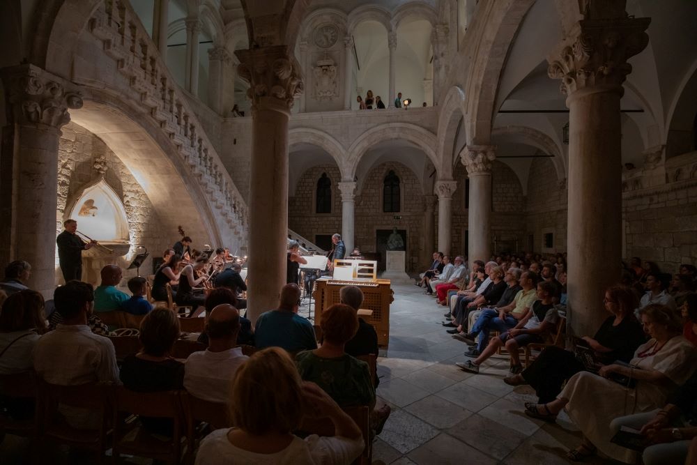 Ljubitelji barokne glazbe sinoć su u atriju Kneževa dvora uživali u vrhunskim izvedbama Händelovog Concerta grossa u d-molu i Koncerta za orgulje i orkestar u g-molu i F-duru te Telemannovog Koncerta za violinu i trubu u D-duru i Suite 'Hamburška plima i oseka' u C-duru. Povjetarac koji je ugodno rashladio festivalsku publiku, iznenadio je glazbenike pa je pomoćnik intendantice za glazbeni program Tomislav Fačini pridržavao note tijekom treće glazbene točke, a simpatičan potez publika je nagradila velikim pljeskom. Ipak, vjetar nije ozbiljnije smetao pa je festivalska publika opušteno i koncentrirano uživala u dvosatnom koncertu koji je ispratila velikim aplauzom, a glazbenici su odsvirali i dodatak.