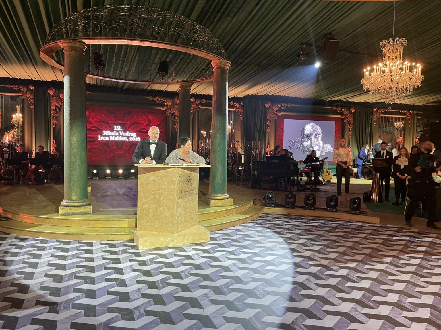 Vudrag je na aukciju došao na poziv vlasnika zaklada OmenaArt i Rafal Brzoska, koje prikupljaju novac za pomoć i obrazovanje djece iz Gane i Poljske, a u posljednje doba i za djecu iz Ukrajine. Uz njega, bilo je 15 najvećih poljskih umjetnika, a cijene ulaznice za aukciju i gala večeru bile su između tri i pet tisuća eura. Takvu cijenu platilo je 400 najbogatijih oligarha, kolekcionara, filantropa, poslovnih ljudi i poznatih osoba iz javnog i društvenog života Poljske. Dobrotvorna aukcija održala se u dvorcu Palača Jana III, ispred čijeg ulaza su bile također izložene Vudragove skulpture golemih metalnih Dijamanata.