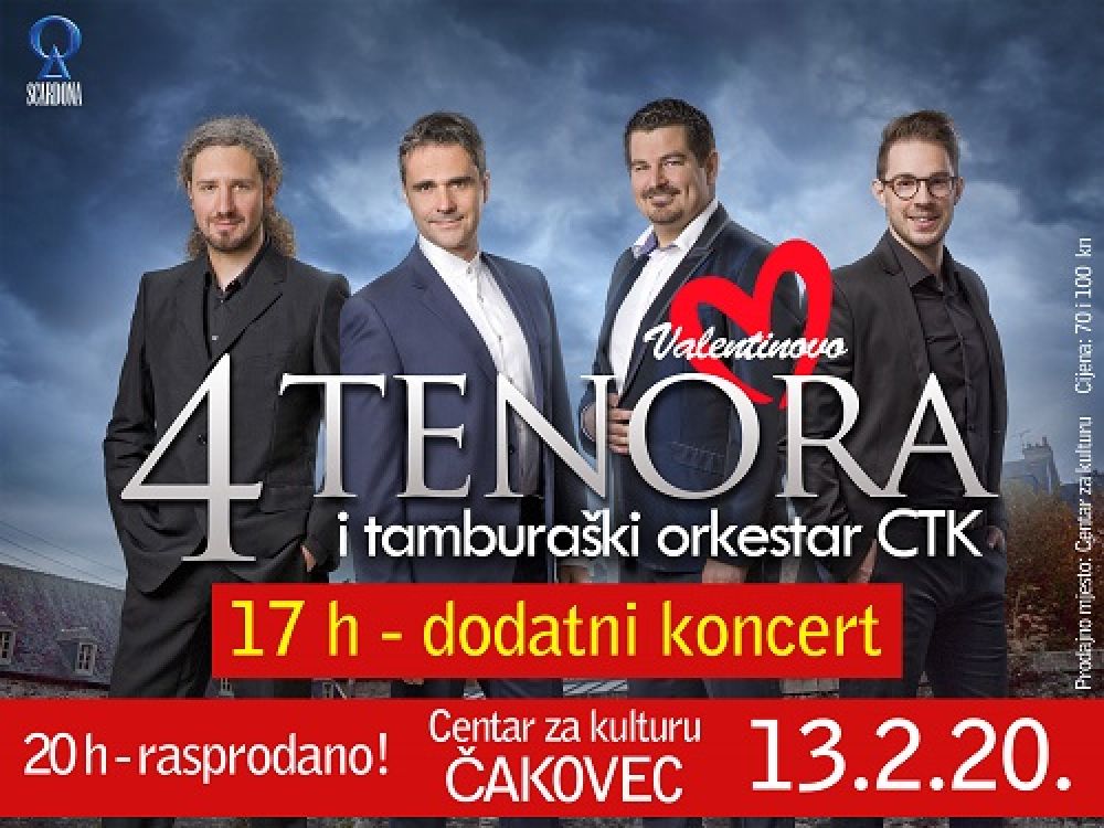 Čakovčani su izvrsno reagirali na 4 Tenora i zato će se 13. veljače održati dodatni koncert, u 17 sati! U posljednjih 10 godina samo je Đorđe Balašević u Čakovcu uspio napraviti istu stvar Tenori su poznati po tome što vole publiku iznenaditi nekim novim pjesmama ili donijeti jedan potpuno novi zvuk s tamburaškim orkestrom. Ovaj su put Marko Pecotić, Đani Stipaničev, Filip Hozjak i Vladimir Garić iznenadili sve nas jer su prvi koncert u 20 sati rasprodali u vrlo kratkom roku. Interes je publike toliki da se održava dodatni koncert, a s obzirom na to da su Tenori jako zauzeti, pokazalo se da je jedini slobodan termin isti dan, drugo vrijeme. Dodatni će se koncert zato održati 13. 2. u 17 sati. Filip nam je otkrio da je jako uzbuđen: "Velika je odgovornost pjevati u 4 Tenora, a još veća je kada pjevate pred svojom domaćom publikom. U ovom je slučaju to moja međimurska publika i moram priznati da mi se polako bude leptirići u trbuhu zbog toga. Najveća pak je odgovornost kad u svega nekoliko dana rasprodate prvi koncert i odlučite napraviti još jedan, znajući pritom da je jedino velikom Đorđu Balaševiću to pošlo za rukom. Ludost? Možda." Pred međimurskom publikom nastupit će s Tamburaškim orkestrom TCK pod ravnanjem maestra Tibora Buna. Posjetitelji će uživati u njihovoj interpretaciji poznatih šansona, evergreena i arija, kao i u novim glazbenim poslasticama koje pripremaju baš za ovo druženje. O sole mio, Golubovi, Brod bez imena i Sve je tvoje samo su neki od hitova koji očekuju publiku. O koncertima na sjeveru Hrvatske Filip nam je iskreno rekao: "Svima nam je još uvijek u sjećanju nezaboravan koncert koji smo imali prošle godine u mom rodnom Prelogu, kao i koncert u Čakovcu, gdje su Tenori nastupili na čuvenoj manifestaciji Porcijunkulovo. Gledao sam doduše taj koncert iz publike, sanjajući pritom svoje snove. No snovi se ostvaruju, zar ne?" Ova glazbena dobitna kombinacija oduševila je i na rasprodanom koncertu na zatvaranju Špancirfesta u Varaždinu 2019. Svojim sjajnim izvedbama i svojstvenim šarmom osvojili su i raspjevali publiku koja ih nije puštala ni nakon nekoliko biseva. "Vođeni snovima želimo da nam se pridružite na koncertima u Čakovcu i da zajedno slavimo ljubav!" Ulaznice po cijeni od 100 kn (parter) i 70 kn (tribina) možete kupiti online i na blagajni Centra za kulturu Čakovec. |
