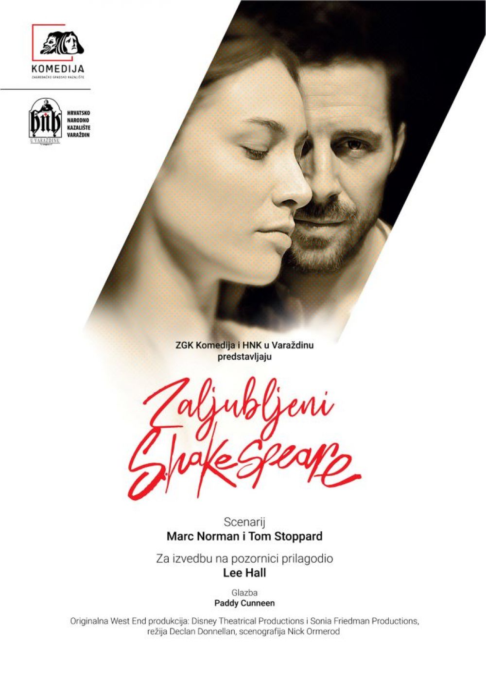 U subotu, 21. rujna u 19,30 sati na Velikoj sceni HNK u Varaždinu na rasporedu je varaždinska premijera predstave "Zaljubljeni Shakespeare" koja je nastala u koprodukciji između HNK u Varaždinu i ZGK Komedija, Zagreb. Iznimno popularan filmski naslov iz 1998. koji uspješno kombinira komediju i izmišljenu romansu ponajvećeg dramatičara svih vremena, za pozornicu je 2014. adaptirao Lee Hall koji je slično već uspješno napravio i s hitom Billy Elliot. Predstava prikazuje ljubavnu aferu čuvenog dramskog pisca u vrijeme kada je pisao Romea i Juliju. Iako izmišljena, priča obiluje brojnim referencama na mnoge Shakespearove drame, a nekoliko je likova utemeljeno na njegovim stvarnim suvremenicima. Na audiciju za Rome u Shakespearovoj kazališnoj družini javi se mladić po imenu Thomas Kent kojem slavni bard povjerava naslovnu ulogu, ne sluteći da je ispod maske dječaka djevojka Viola, inače strastvena obožavateljica teatra i njegovih djela, želeći se okušati u tada za djevojke zabranjenom glumačkom zanimanju i približiti obožavanom autoru.