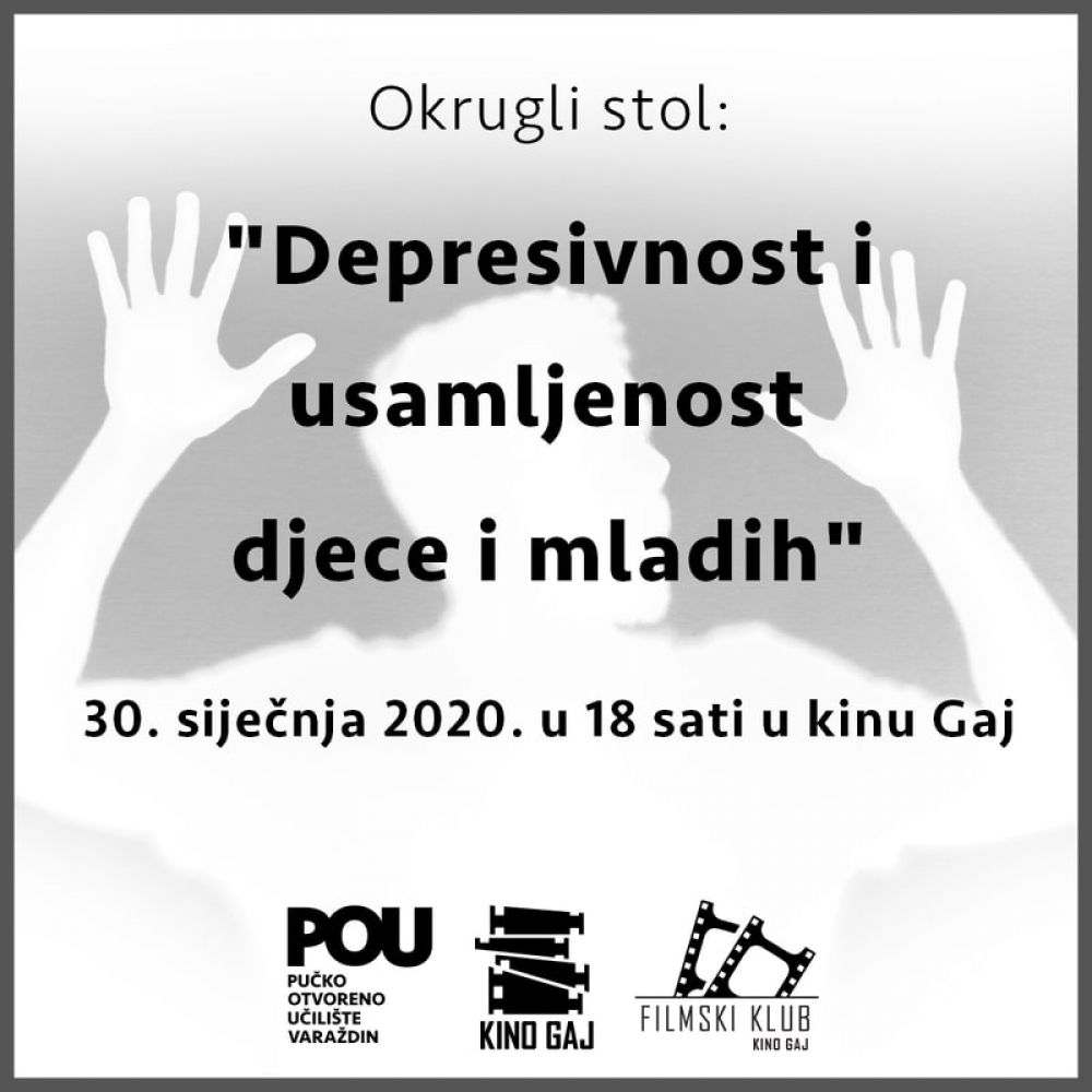 Pučko otvoreno učilište Varaždin otvara još jednu zanimljivu temu za promišljanje, koja bi trebala posebno zanimati roditelje adolescenata i njih same te poziva sve zainteresirane na okrugli stol pod nazivom ''Depresivnost i usamljenost djece i mladih', a nakon toga i film na sličnu temu.. Besplatno predavanje (okrugli stol) održat će se u četvrtak, 30. siječnja s početkom u 18 sati u dvorani kina Gaj (Ulica Ljudevita Gaja 1, Varaždin).