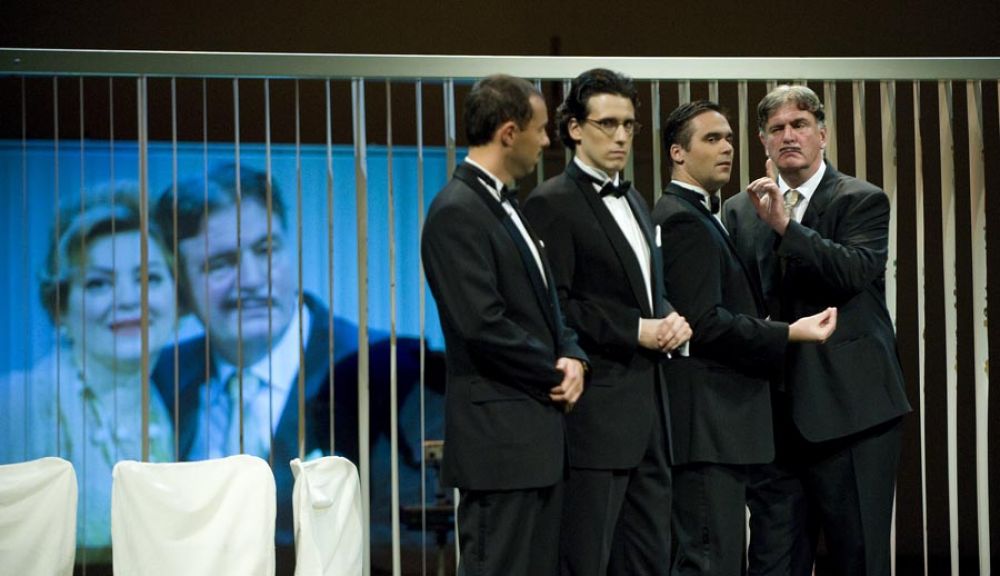 Režiser ove komedije u tri čina, Samo M. Strelec, ujedno je odradio i scenografiju. Uz prvake drame varaždinske nacionalne kuće, Jagodu Kralj Novak i Stojana Matavulja, u predstavi igraju Ivica Pucar, Mitja Smiljanić, Ozren Opačić, Leona Paraminski, Darko Plovanić, Anica Kovačević, Slavica Jukić i Otokar Levaj.