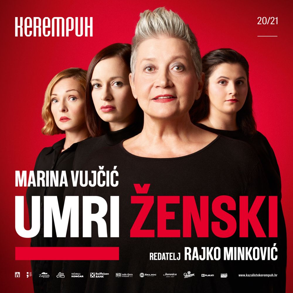 Praizvedba predstave “Umri ženski” Marine Vujčić, u adaptaciji Dore Delbianco i Rajka Minkovića koji potpisuje i režiju, održat će se u subotu, 10. listopada 2020. u Satiričkom kazalištu Kerempuh. Ovaj bogati tekst ugledne i nagrađivane spisateljice Marine Vujčić, sazdan od mnoštva snažnih ženskih glasova, u svom je pomalo paradoksalnom podnaslovu nazvan ˝tihom dramom.˝ Taj izraz nipošto ne utišava temperament ili emocionalna stanja svojih protagonistica već označava svu dubinu tinjajućih drama koje eruptivno izbijaju na površinu onda kada ih najmanje očekujemo.