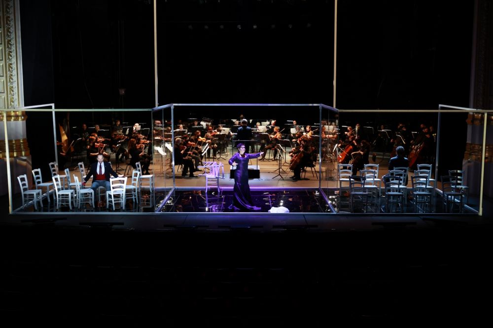 Riječka La Traviata režirana je u posebnim uvjetima izvedbe prilagođenima aktualnim epidemiološkim mjerama zaštite, s orkestrom na pozornici i zborom u dijelu loža.