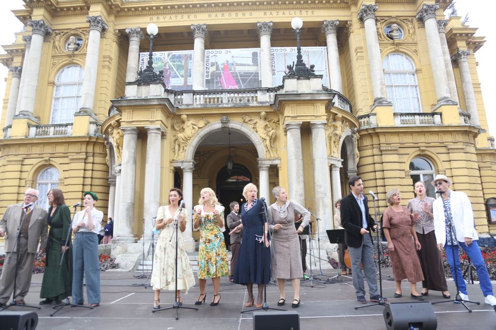 Ispred HNK-a glumci će izvesti pjesme koje kroz metafore iz svakodnevnog života otkrivaju tajni svijet kazališta, filma i glazbe.