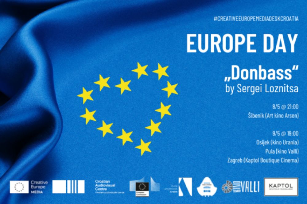 Na inicijativu Međunarodnog festivala književnosti u Berlinu Desk Kreativne Europe – Ured MEDIA Hrvatske, u suradnji s Art kinom Arsen (u Šibeniku), kinom Urania (u Osijeku), kinom Valli (u Puli) i Kaptol Boutique Cinema (u Zagrebu) te u partnerstvu s Hrvatskim audiovizualnim centrom i Predstavništvom Europske komisije u Hrvatskoj, obilježava Dan Europe 8. i 9. svibnja o.g. prikazivanjem ukrajinskog filma „Donbas“ u režiji Sergeja Loznice.