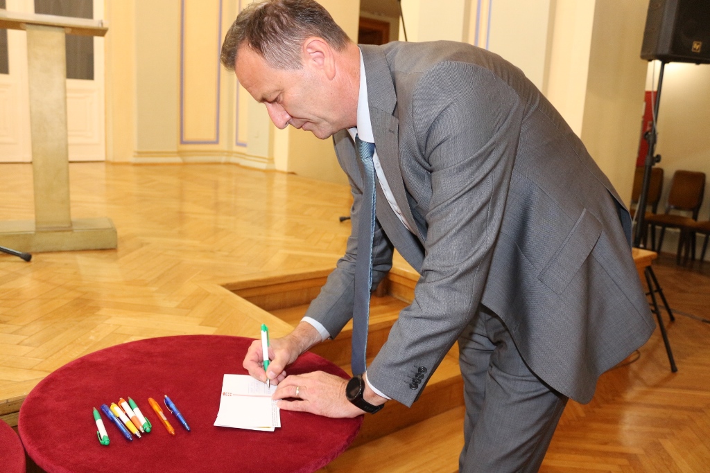 Gradonačelnik je istaknuo kako je HNK u Varaždinu jedno od tri najznačajnija i najprepoznatljivija objekta u Varaždinu, uz Stari grad i Gradsku vijećnicu. „Ova zgrada izgrađena je prije 150 godina i na današnji dan otvorena predstavom Ivana Kukuljevića Sakcinskog „Poturica“ na hrvatskom jeziku, što je bilo vrlo hrabro u to vrijeme. Ta avangarda koju smo već tada imali kao kazališna kuća i kazalište, nastavlja se i danas. Zgradu je projektirao Hermann Helmer, to je njegov biser nakon kojeg je on napravio preko 50 kazališnih koncertnih zgrada po cijeloj Europi i svijetu, a uvijek je iznad svog stola imao sliku varaždinskog HNK. Imao je 23 godine kada se gradilo kazalište u Varaždinu. Zgrada je izgrađena novcima građana našeg grada što pokazuje koliko su Varaždinci tada željeli i voljeli kulturu. Bila je završena za manje od dvije godine, a ne vjerujem da bi danas, čak uz sve moderne građevinske metode, to uspjeli napraviti u tako kratkom roku.“ – rekao je gradonačelnik Neven Bosilj.