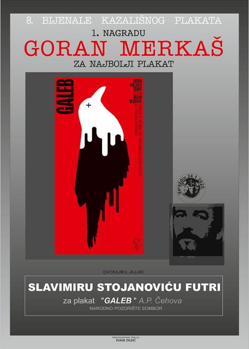 Svojevrsna je to počast našem Goranu Merkašu kojeg smo ponosno pratili i doživljavali kao najupućenijeg i najkreativnijeg sporednog a ujedno presudnog likovnog kroničara teatra u gradu. No to je istovremeno i zapis i dokument o suvremenom suživotu likovnosti, pisane riječi i glume uz „daske koje život znače“. Ovogodišnje izdanje izložbe bit će predstavljeno u petak, 24. siječnja u 19 sati – prvo s dijelom izložbe u Izložbenom salonu palače Sermage, a potom i drugim dijelom u prostoru galerije Ajngel, Gajeva ulica 15. Pozivamo Vas da prisustvujete ovim događanjima.