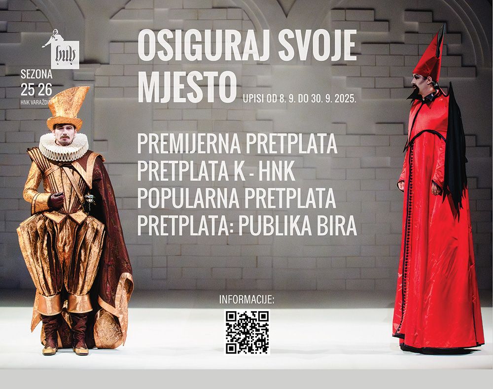 Hrvatsko narodno kazalište u Varaždinu od 8. rujna otvara upise za pretplate. Publika do 30. rujna može odabrati svoje mjesto u gledalištu i osigurati jedan ili više pretplatničkih paketa za novu kazališnu sezonu.