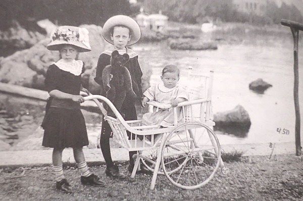 Iz knjige: Drago Gervais u dječačkoj dobi s igračkom u ruci, sa sestricom Blankom. Nepoznato je najmlađe dijete. Opatija 1912. godine.