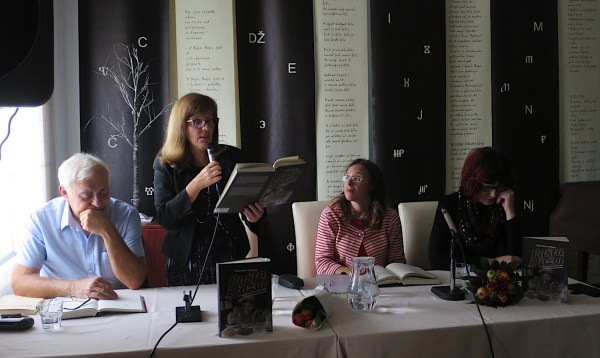S predstavljanja u Društvu hrvatskih književnika (slijeva nadesno): nakladnik Franjo Butorac, Vjekoslava Jurdana, prevoditeljica Jennifer Lazatić Jungić i Lada Žigo Španić (Fotografija Božica Brkan / Oblizeki)