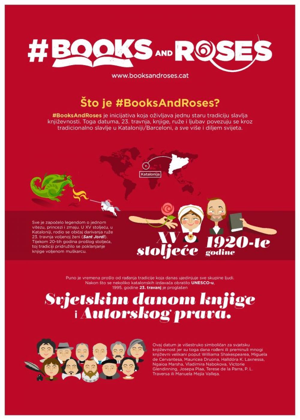 No, osim što je na nagovor katalonskih izdavača, 1995. godine, UNESCO proglasio 23. travnja Svjetskim danom knjige i autorskih prava, ovaj datum za Kataloniju ima još jednu, posebnu važnost. Toga dana slavi se Sant Jordi (Sveti Juraj), dan ljubavi i književnosti koji se masovno obilježava u Barceloni i širom Katalonije kroz inicijativu “Books and Roses”. Ova globalno prepoznata inicijativa kojom se povezuju knjige, ruža i ljubav preselila se izvan granica Katalonije pa se tako svake godine u više od 50 zemalja svijeta održava preko 150 proslava.