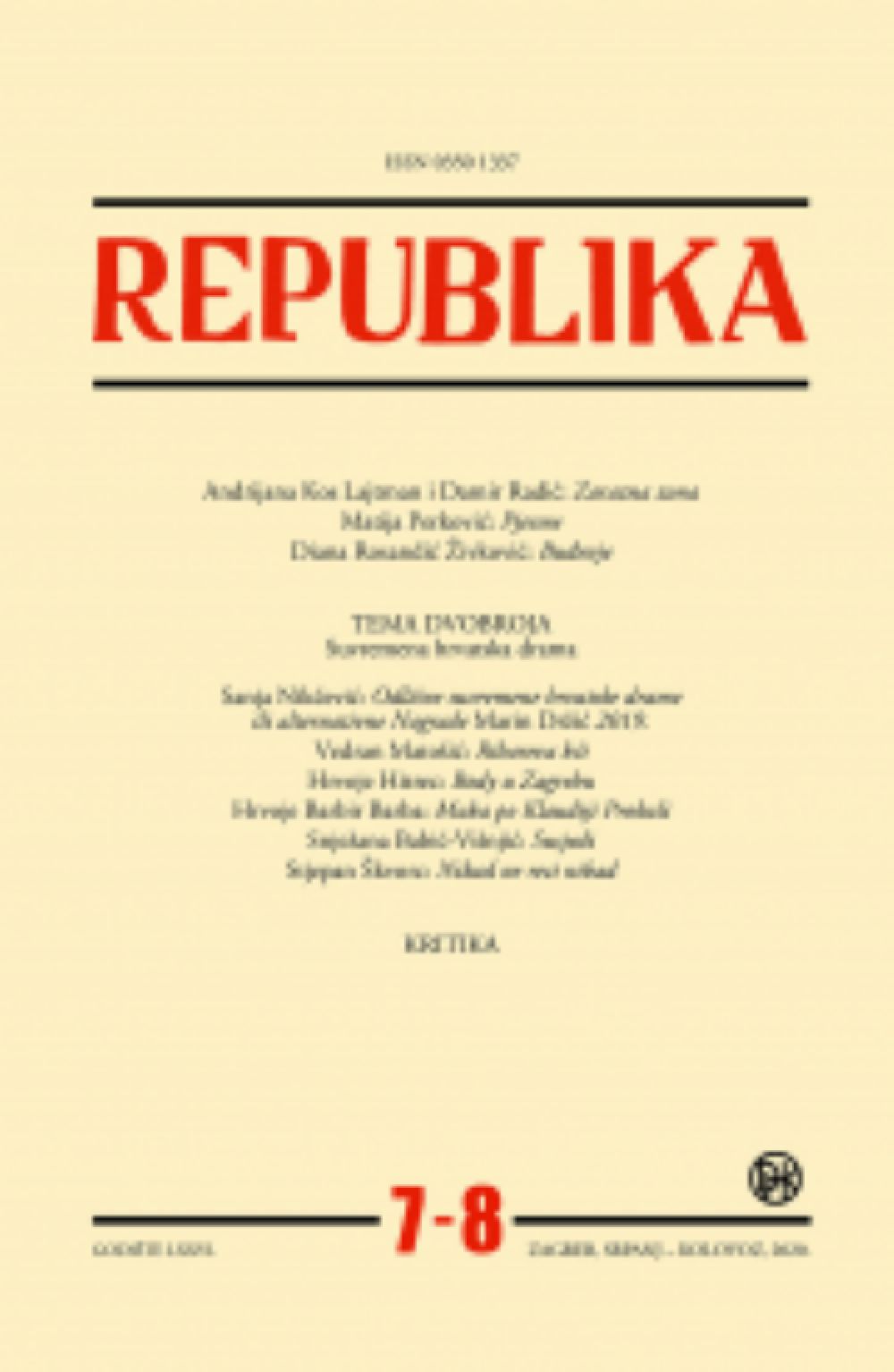Objavljen je novi dvobroj časopisa "Republika" 7-8/ 2020. DHK-a. Urednici su Božidar Petrač i Tin Lemac. Unatoč koroni vidi se da za hrvatsku književnost nema korona krize, materijali stižu u uredništva a časopisi redovno izlaze što je za svaku pohvalu.