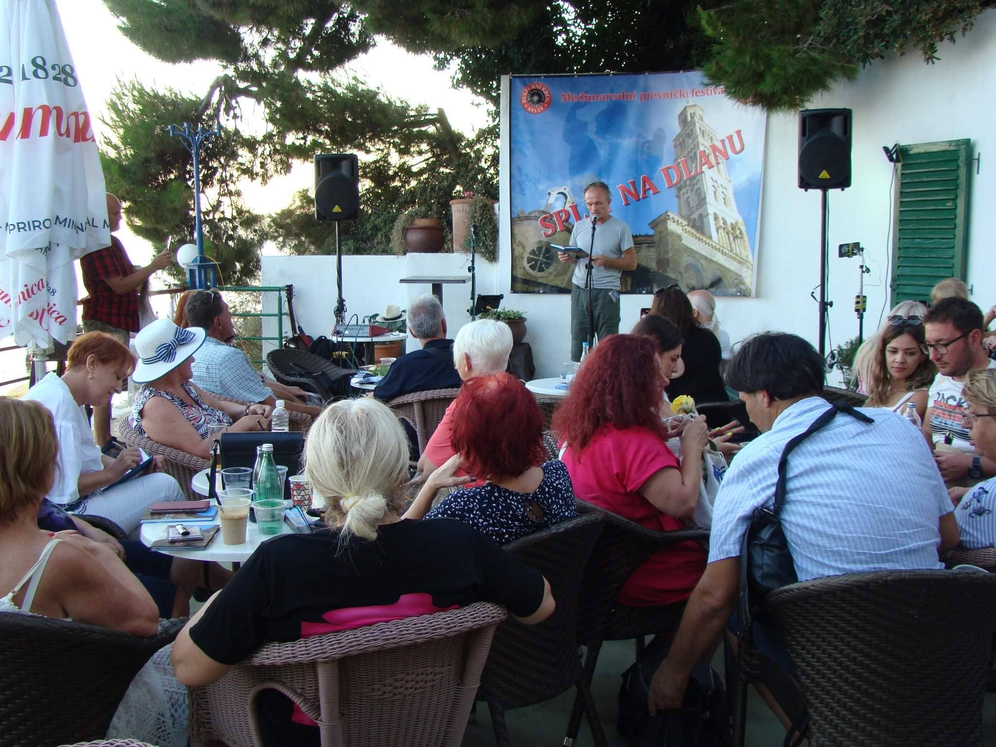 U prvom dijelu pjesničke večeri su predstavljeni pjesnikinje Sanja Fistonić s Jelse na otoku Hvaru i Ankica Anchie iz Splita te pjesnik Nihad Mašić River iz Tuzle (BiH). U drugom dijelu su se predstavili nazočni pjesnici iz zbirke "Split na dlanu." Uvodnu riječ je održao Zdravko Odorčić, predstavljanje je vodila Slavica Oka Pažanin, a sve je bilo popračeno i glazbenim izvedbama Diane Hilje, kantautora Borisa Kriveca i Jerka Marevića. Kao iznenađenje večeri nastupila je ženska klapa Marjanke.