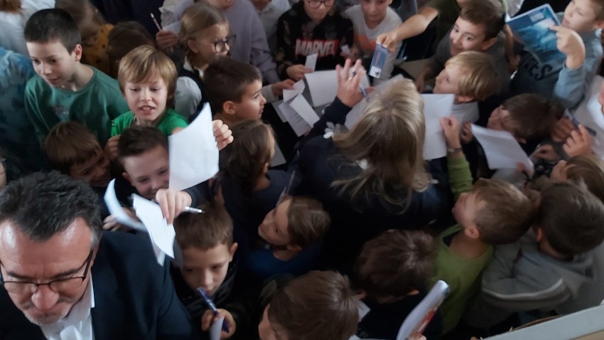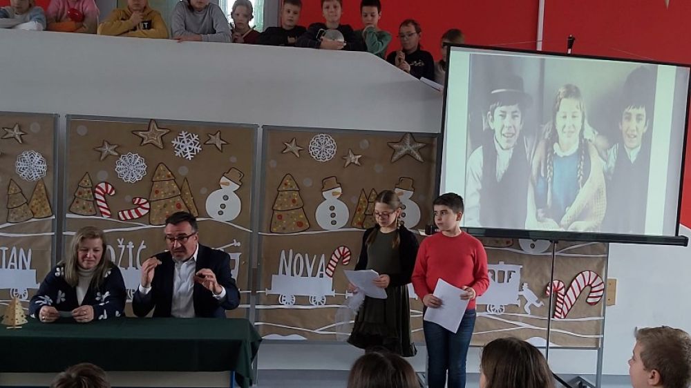 Draga i Pero iz filma Vlak u snijegu danas su prijepodne bili gosti varaždinskih učenika i njihovih učitelja, na poziv I. Osnovne škole. Jednosatno druženje s junacima najljepšega dječjeg filma domaće kinematografije započelo je povijesnim vremeplovom u kojem su okupljene male putnike kroz radnju filma proveli učenici i školski zbor. Poznate pjesme iz filma i zvuk lokomotive u snijegu samo su neki od prepoznatljivih detalja koji su podsjetili na sedamdesete godine snimanja filma, a Vlak u snijegu, zahvaljujući Dragi i Peri, još će dugo stajati na peronu ove škole.