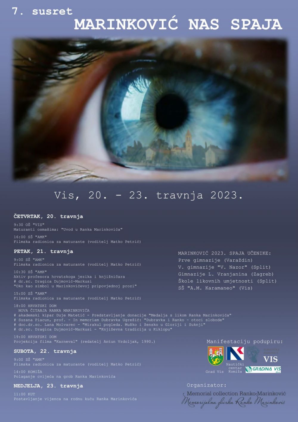 Već tradicionalni književno-znanstveni susret Marinković nas spaja u organizaciji Memorijalne zbirke Ranko Marinković iz Visa ove godine obogatit će program viškoga proljeća po sedmi put, no manifestacija je ove godine utoliko značajnija što se njome obilježava 110. obljetnica rođenja ovog značajnog hrvatskog književnika.
