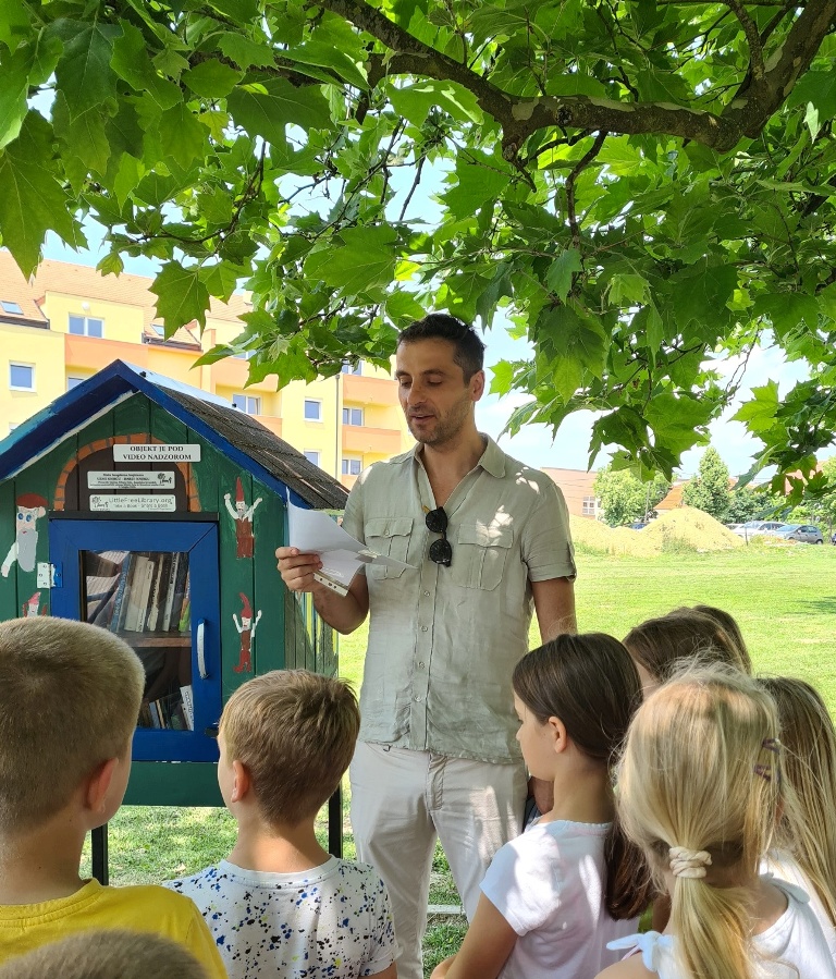 Učenicima produženog boravka klinčaselske škole o važnosti čitanja iz zabave i zadovoljstva, pogotovo sada kad počinju dugi ljetni praznici, govorila je predsjednica Kreativnog studija Zvrk i jaskanske Matice hrvatske Klementina Škrabe. Glumac, a sad i kum, Robert Kurbaša naglasio je da čitanjem i učenjem dolazi znanje koje je najbitnija stvar u rastu i razvoju svakog djeteta. On je djeci pod krošnjama drveća pročitao prekrasnu pjesmu "U travi" velikog Antuna Gustava Matoša, čiji se 150. rođendan slavio i u ovom kraju 13. lipnja ove godine i još se slavi. Nazočan je bio i ugledni hrvatski dramatičar i publicist, Jaskanac Nino Škrabe. Novi kum klinčaselske Male besplatne knjižnice Robert Kurbaša svečano je otkrio novooslikanu knjižnicu, uz pljesak klinčaselskih osnovnoškolaca i njihovih vrijednih učiteljica Mateje Frketić Vrbanić, Ivane Varadi i Marije Brajković. One su s Robertom odmah počele dogovarati i nove zajedničke projekte.