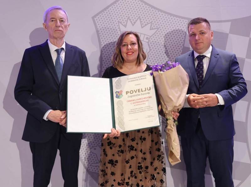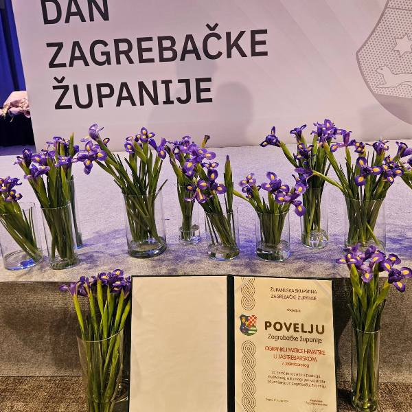 Predsjednica Ogranka MH u Jastrebarskom Klementina Škrabe primila je 17. srpnja, na svečanoj sjednici u povodu Dana Zagrebačke županije, iz ruku župana Stjepana Kožića i predsjednika Županijske skupštine Mate Čička, najveće priznanje Zagrebačke županije. Kruna je to njihovog dosadašnjeg rada te nagrada za sve njihove brojne članove, suradnike i prijatelje, na čelu s Predsjedništvom, Nadzornim odborom i Gradskim pjevačkim društvom "Javor". Čestitke zaslužuju svi uključeni u spomenuti ogranak i to, kao što su na dodjeli nagrade tom prigodom svi rekli - uključujući premijera Andreja Plenkovića i zagrebačkog gradonačelnika Tomislava Tomaševića – zasluženo ! Uz predsjednicu Klementinu Škrabe nagradu su proslavili ugledni članovi ogranka: načelnik Općine Pisarovina Tomo Kovačić, načelnik Općine Krašić Josip Petković Fajnik, predsjednik krašićkog općinskog vijeća Josip Špoljar, član Nadzornog odbora jaskanske Matice Nino Škrabe i vrijedni Matičar Ivan Zoretić. Prigodom uručenja vrijednoga priznanja predsjednica Ogranka Klementina Škrabe je izjavila: „Zahvalni smo što je Zagrebačka županija prepoznala naš trud i zalaganje, to će nam samo biti motiv da ubuduće radimo još više na promicanju i očuvanju svega što je važno u širem jaskanskom kraju. Ovu nagradu jednako je zaslužilo svih naših više od stotinu članova ogranka, na čelu s Predsjedništvom, Nadzornim odborom te pjevačicama i pjevačima Gradskog pjevačkog društva "Javor". Svi oni utkali su dio sebe u sve naše uspjehe. Veselimo se svemu što ćemo zajedno, na krilima ove nagrade, postići u budućnosti!"