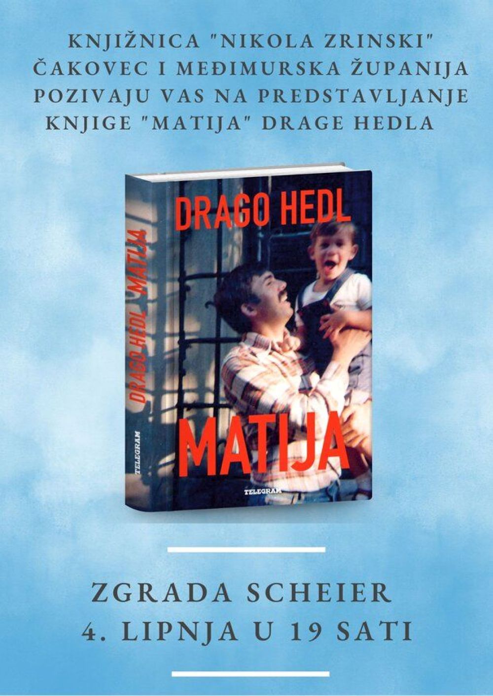U srijedu, 4. lipnja u 19 sati, u zgradi Scheier u Čakovcu, održat će se predstavljanje knjige „Matija“ autora Drage Hedla. Predstavljanju će osobno prisustvovati i sam autor.