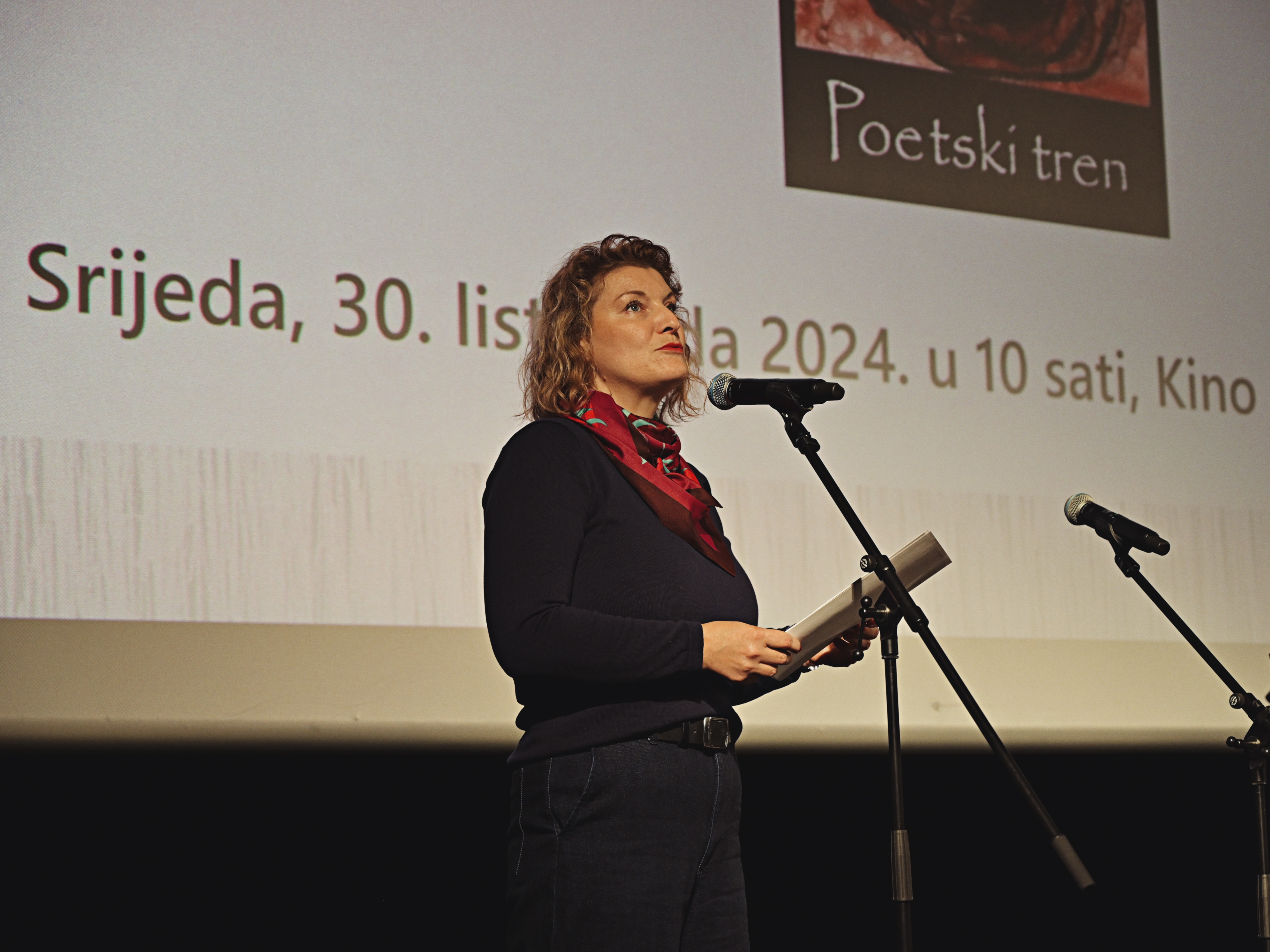 Kino Edison tog se dana pretvorilo u mali svemir poezije u koji su mogli uploviti svi. Ovogodišnji slogan „Pričaj mi“ savršeno se sljubio s priredbom u kojoj se pričalo o poeziji, a koju je organizirala Glazbena škola Karlovac, nastavnica Sandra Jurić, ujedno i moderatorica priredbe u kojoj su sudjelovali autorica „Poetskog trena“ Gordana Kovačić i učenici Glazbene škole. Na pozornici su nastupali mladi umjetnik na harmonici Stjepan Magdić, te kvartet saksofona u sastavu Bruno Bilić, Kiara Radojević, Franko Vine i Mateo Radojević. Gordana Kovačić je u razgovoru s voditeljicom Sandrom Jurić živo objašnjavala što je Poetski tren i kako je nastao, zašto je smješten na YouTube kanalu, kako izgleda priprema jednog videorada, a trenutno ih je oko 160. Na pozornici kina Gordana je i recitirala uz glazbenu suradnju učenika, gitarista Lorene Kiš, Magdalene Peroš i Josipa Kovačevića, te udaraljkaša Tina Malinara.