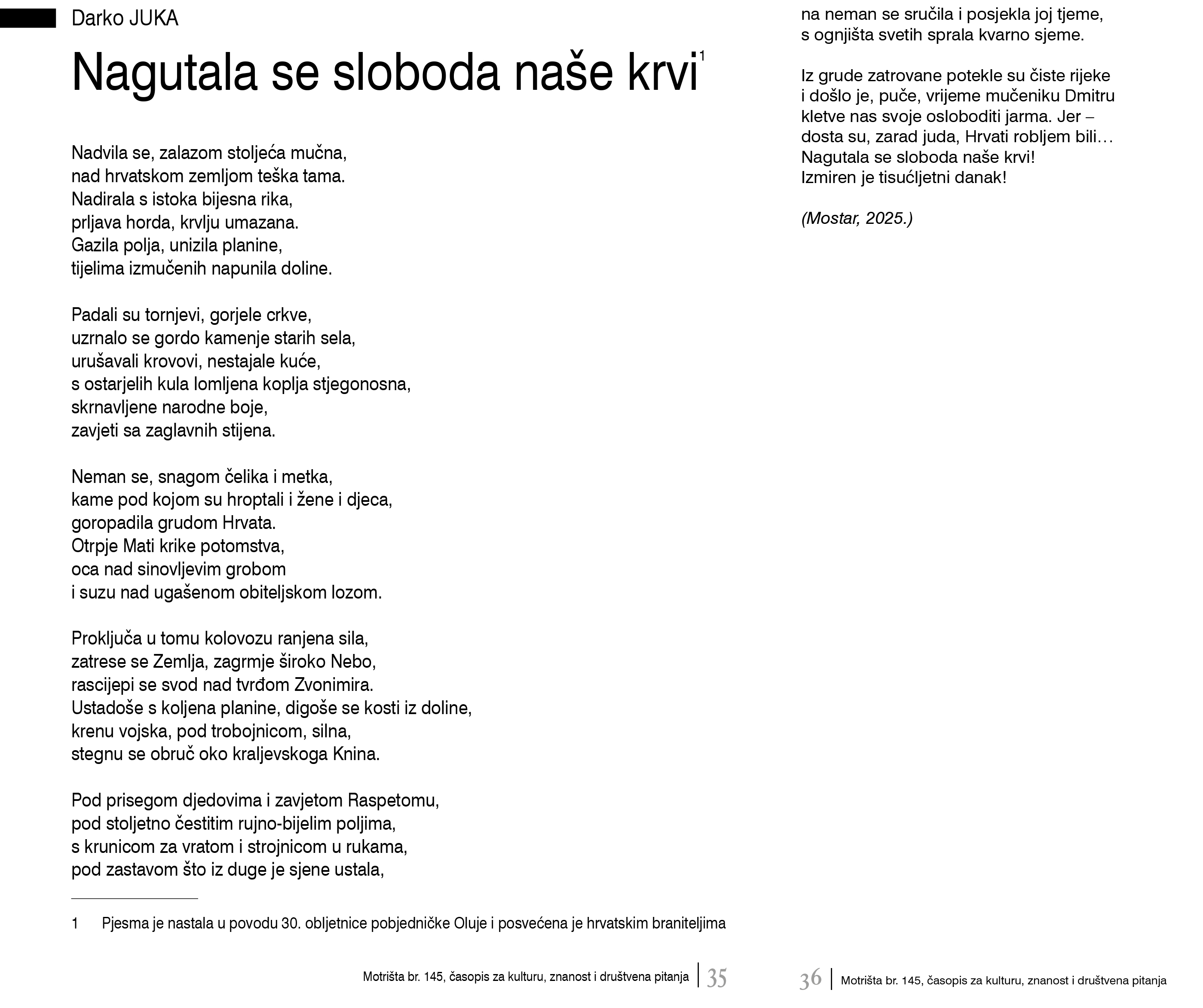 Darko Juka - Nagutala se sloboda naše krvi Podijeli: Tweet Najnovije vijesti Doživljaj za cijelu obitelj - nove svjetlosne instalacije uz Dvorac Trakošćan – svjetlosna čarolija, interaktivne igre i bajkovita šetnja kroz dvorac i perivoj HNK u Varaždinu uoči Božića publici darovao istinsku opernu poslasticu – novu premijeru Humperdinckove opere Ivica i Marica Subotnji program Adventa u Varaždinu - Perpetuum Jazzile na mirisnom korzu Hrvatski Telekom i Fina potpisali stratešku suradnju Kolumne Deglobalizacija: trend ili prolazna faza? U žarištu - Odabir prioriteta postaje imperativ Kišni kolovoz turizmu nameće nove izazove U kojoj mjeri koristimo turističku ponudu kulture Intervjui Prof. dr. sc. Marina Klačmer Čalopa o osobnim uspjesima i novom poglavlju razvoja Fakulteta organizacije i informatike Ivica MARIJAČIĆ: Hrvatski tjednik ne smeta ni Hrvatima ni Srbima, nego samo agresorskim Srbima i orjunaškim Hrvatima Razgovor s Gorankom Horjan, ravnateljicom Dvora Trakošćan i novoizabranom rizničarkom Međunarodnog savjeta za muzeje (ICOM) u Dubaiu Akademik Josip Pečarić o marševima uperenim rušenju Hrvatske i tzv. antifašistima - komentari su bili da Thompson skupi više ljudi kada ide kupiti mlijeko Blogbusters Povijesne laži i istine - Od tisuća “ubijenih“ brojka se svela na troje! Zelenski iznenadio s dva kompromisna rješenja Kako jedan smjeli potez izaziva strahove oko Berlina Zelenski iznenadio s dva kompromisna rješenja - Kako jedan smjeli potez izaziva strahove oko Berlina Jamstva sigurnosti tvrd su orah za Ukrajinu, Rusiju i SAD