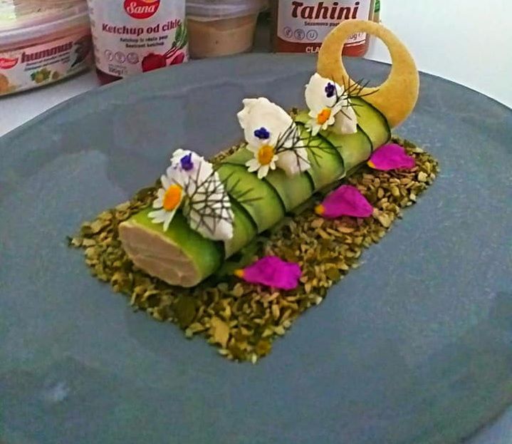 Cannelloni od mariniranog krastavca punjeni hummusom (recept Mate Đuzela, šefa kuhinje hotela Pax u Splitu)