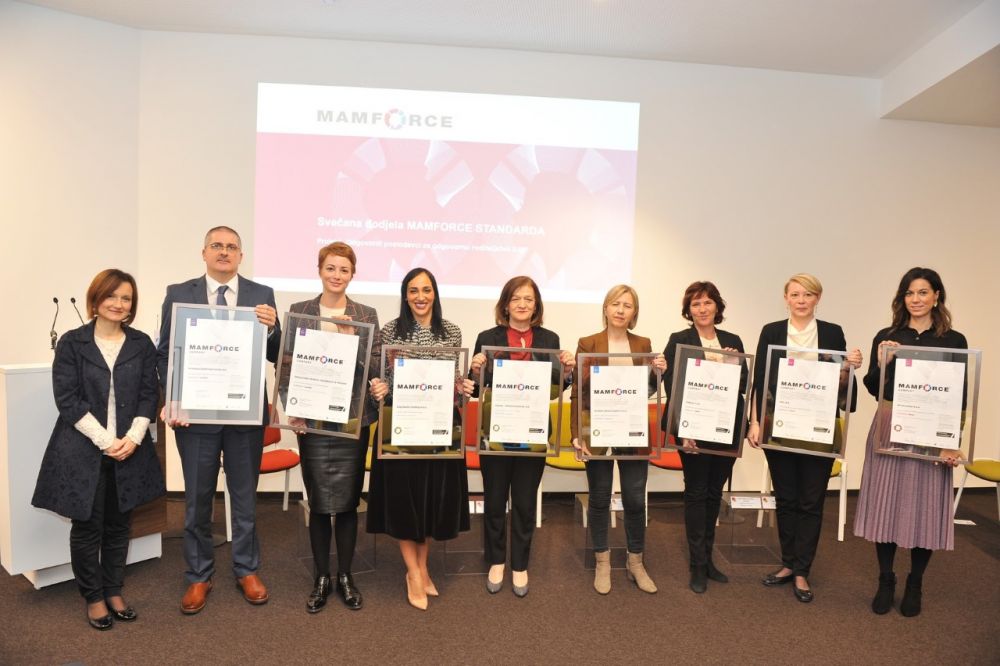 Budući da realni sektor nije mogao čekati institucionalne mjere, prije osam je godina počela dodjela standarda MAMFORCE. Ove su godine osnovni standard primili Končar - Elektroindustrija d.d., Gradska plinara Zagreb i Zagrebački holding. Napredni standard u kategoriji Grow dobile su A1, INA d.d. i Fiducia, a u kategoriji Change dobili su ga HEP d.d. te Odvjetničko društvo Hanžeković & Partneri. MAMFORCE standardi dodjeljuju se organizacijama koje se trude biti odgovorne prema obiteljskim potrebama zaposlenika.
