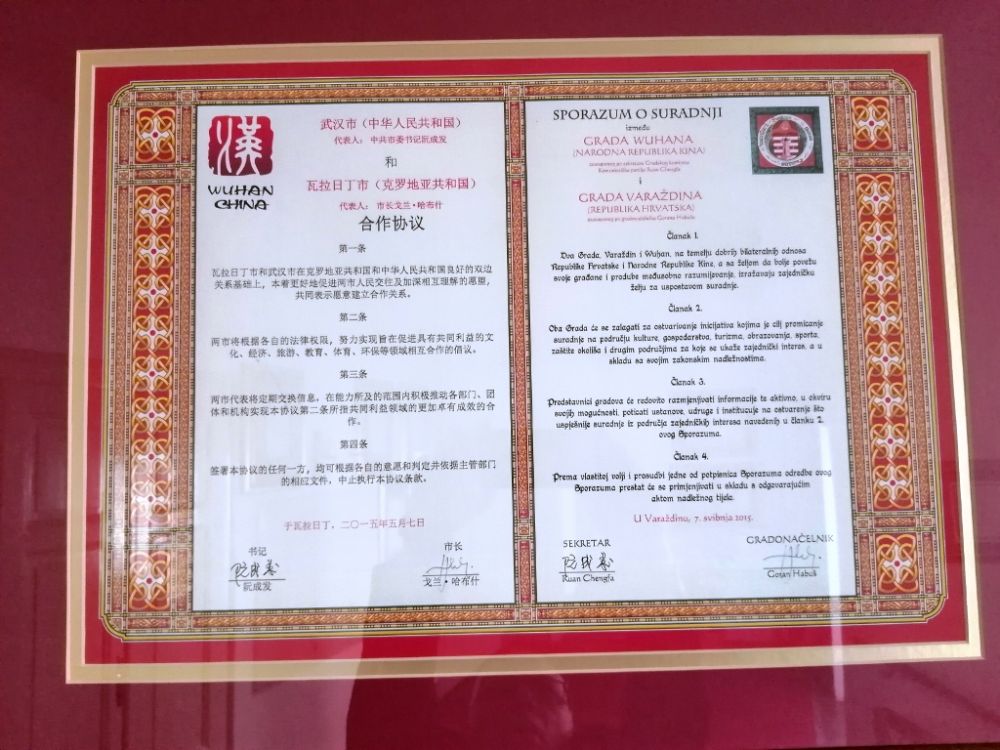 Gradovi Varaždin i Wuhan postali su prijateljski gradovi 2015.  godine. Želja nam je obogatiti tu suradnju novim sadržajima. U tom smislu želimo da krizu izazvanu virusom što prije prevladate te vam želimo puno uspjeha.