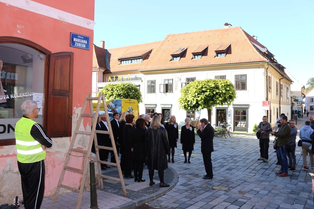 Na postavljanju ploče u čast pokojnom profesoru Marijanu Zuberu, jednom od najistaknutijih hrvatskih glazbenih pedagoga, dugogodišnjem ravnatelju varaždinske glazbene škole zaslužnom za razvoj glazbenog amaterizma u Varaždinu i cijeloj zemlji u ime obitelji zahvalila je kćer Renata Vitković Zuber. Zbog Kapela Paulina Warasdin je pod ravnanjem Zdenka Kušćera uveličao događaj pjesmom Moj kraj. Zbor je inicirao imenovanje ulice po Marijanu Zuberu koji je bio iznimno cijenjen i poštovan i u čiju čast zbor već drugu godinu organizira festival zborova Zuberfest.