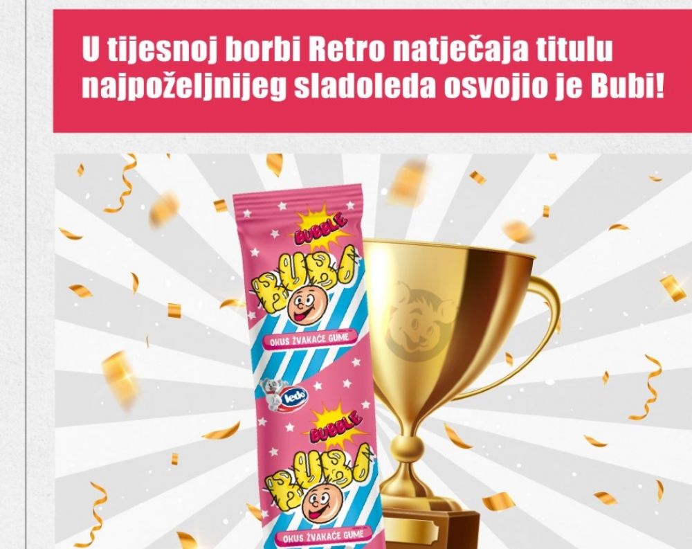 Ledo „retro sladoledi“ u tijesnoj su borbi između Njofre, Bubija i Top Mixa u nedavno održanom „RETRO“ natječaju dobili pobjednika. Većinom glasova brojnih sladolednih fanova odlučeno je da se u Ledo škrinje uskoro vraća Bubi - legendarni sladoled okusa žvakaće gume!