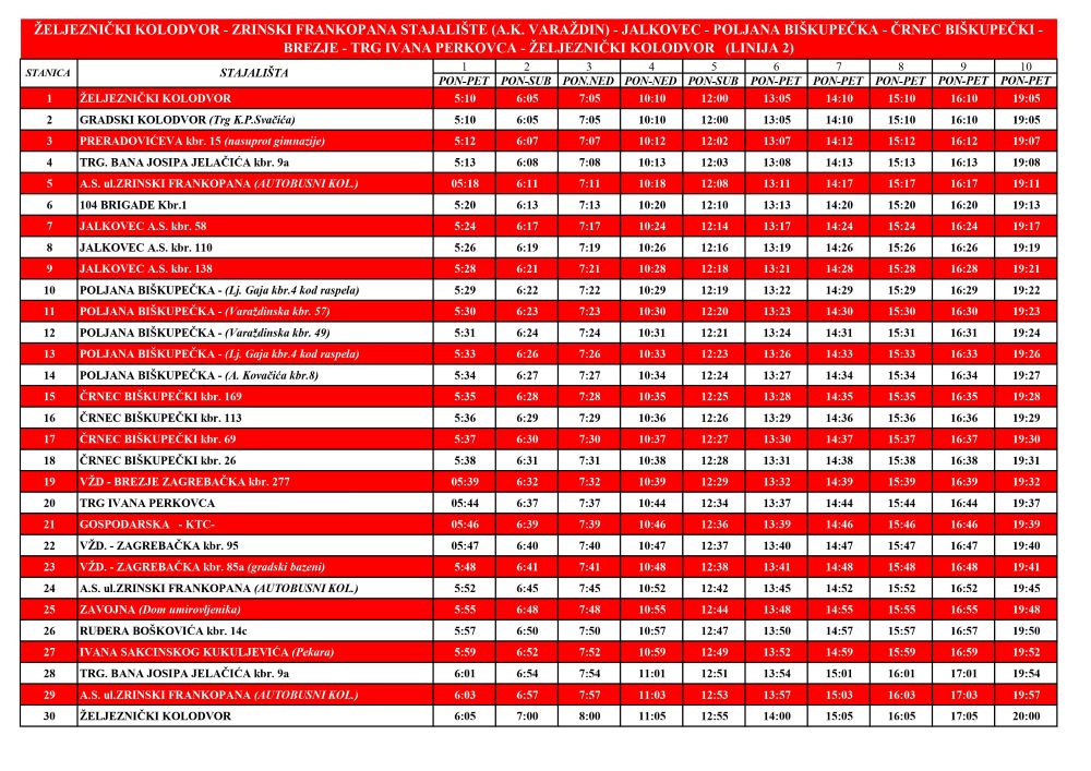 Novi vozni red na svim linijama primjenjivat će se od 1. ožujka 2021. godine.