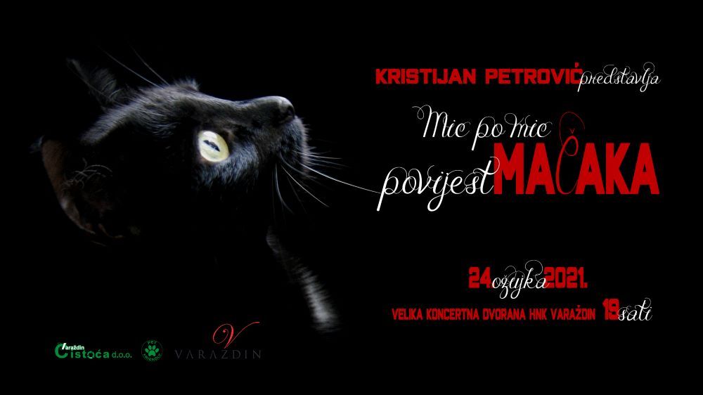 Da bismo vam približili ova uistinu zanimljiva bića, osmislili smo serijal predavanja u kojem vam pričamo o povijesti mačaka – odakle su došle, kako su se ljudi odnosili prema njima u pojedinim periodima povijesti, i kakva je situacija danas. Mačke su kao i mi, osjećajna bića koja duboko doživljavaju i osjećaju okolinu, događaje i bića kojima su okružena. Ovim predavanjima Grad Varaždin i TD Čistoća d.o.o. žele vama, zaljubljenicima u mačke, pružiti dodatne informacije, a vama koji to još niste, žele probuditi znatiželju i zanimanje koji će, sigurni smo, na kraju rezultirati, možda ne obožavanjem, ali svakako prihvaćanjem mačaka kao osjećajnih bića s kojima možemo uspostaviti lijepi suživot. Pozivamo vas u Veliku koncertnu dvoranu Hrvatskog narodnog kazališta u Varaždinu na predavanje Kristijana Petrovića, pod nazivom