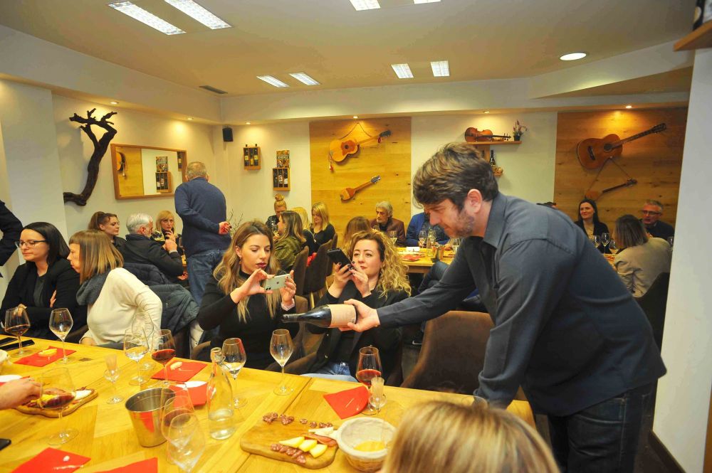 Uz vina su posluženi punomasni kravlji sir i sir škripavac iz Boljunskog polja te žlomprt (kare) i boškarinove kobasice od dva ogranka istarske obitelji Buretić.