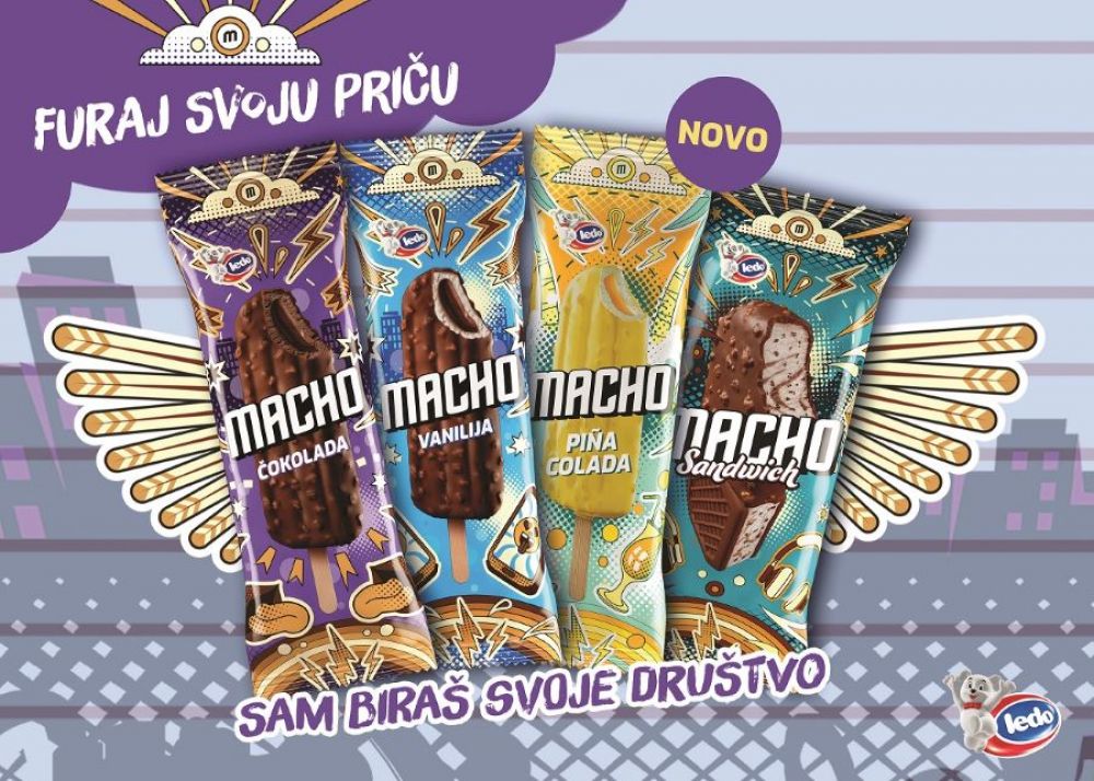 Ledo je tako i ovoga puta oduševio sve svoje obožavatelje te klasične Macho okuse čokolade i vanilije predstavio u nikad urbanijem i mlađahnom dizajnu. Uz novi „look“, primarno mlađu publiku, zasigurno će oduševiti i drugačija kombinacija okusa koju donosi Macho Piña Colada te nikad viđeno izdanje Macha u formi sendviča. Sigurni smo da će ovi noviteti iz Leda vrlo brzo oduševiti sve ljubitelje Macho sladoleda i postati jedni od omiljenih ljetnih okusa u kojima mogu uživati i mladi, ali i svi oni koji se tako osjećaju.