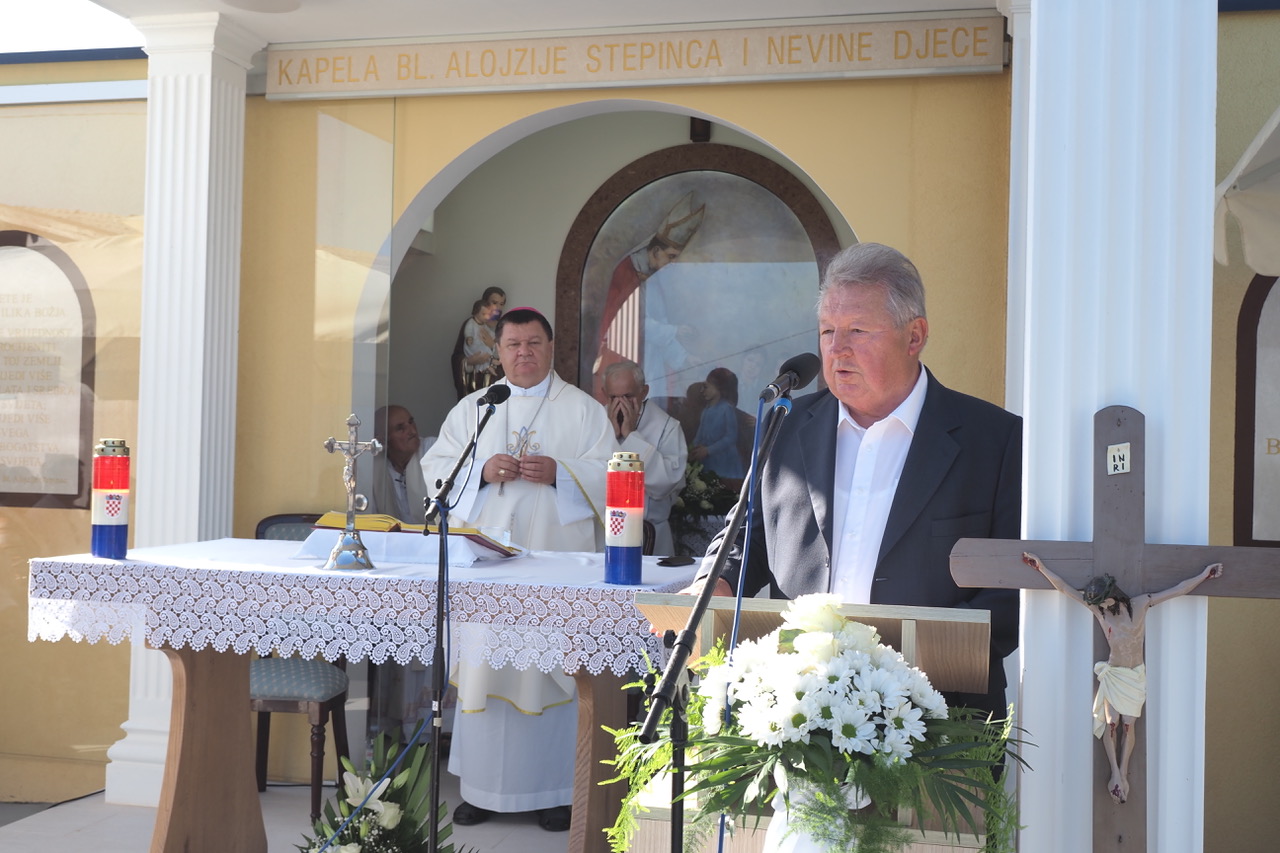 - Kapelica se nalazi na čestici i zemljištu u koje su unatrag nekoliko stoljeća pa sve do poslije drugoga Svjetskog rata 1945. godine ukapana nekrštena novorođena djeca, tako da smo se sada barem simbolično pokojnima odužili posvetivši to područje. Poslije drugoga rata to je zemljište bilo zapušteno a uklonjene su sve oznake i znakovlje groblja te je sve bilo zaraslo u grmlje. Sadnjom vinograda tijekom 2006. godine rodila se ideja da se zapušteno groblje očisti te da na ovome mjestu podignemo kapelicu u čast nevine dječice i na slavu njihovog zaštitnika blaženoga kardinala Alojzija Stepinca. Zahvaljujem svima koji su na bilo koji način sudjelovali u ovome od pripreme i izgradnje pa sve do ovoga blagoslovljenog trenutka – kazao je u emotivnom govoru Stjepan Šafran.