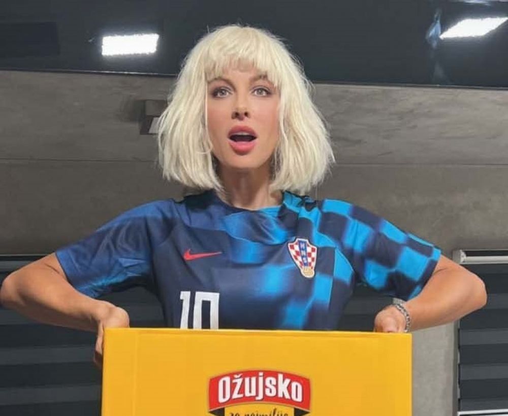“Hvala Ožujskom pivu na predivnom poklonu i dresu! Čestitam Hrvatskoj na plasmanu u polufinale! Volimo vas, uz vas smo!”, izjavila je slavna glumica.