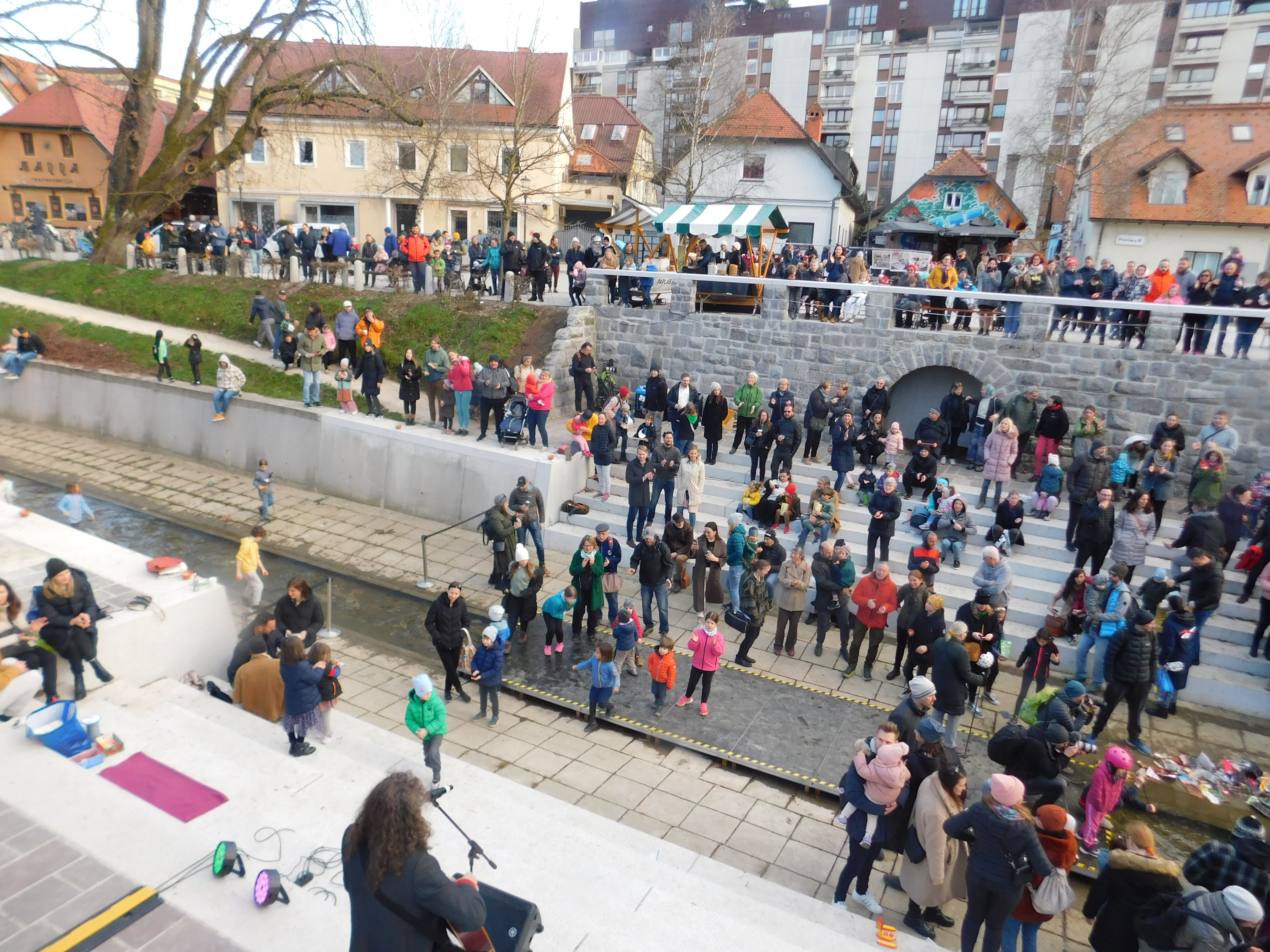 Spuštanje »gregorčka« u rijeku kao pozdrav proljeću - stara tradicija ljubljanskih obrtnika nastavlja se na radost djece i roditelja