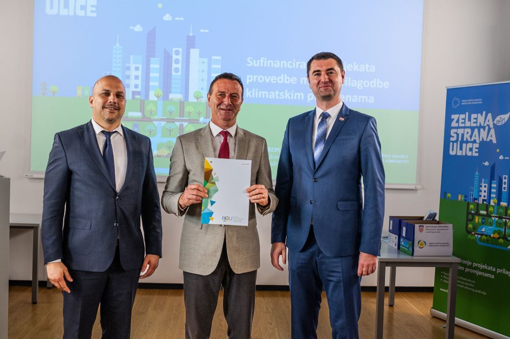 Ministar gospodarstva i održivog razvoja prof. dr. sc. Davor Filipović i direktor Fonda za zaštitu okoliša i energetsku učinkovitost Luka Balen danas su u Centru za posjetitelje Medvedgrad u Zagrebu uručili gradonačelniku Grada Varaždina dr. sc. Nevenu Bosilju ugovore za sufinanciranje projekta provedbe mjera prilagodbe klimatskim promjenama pod nazivom „Varaždin pod krošnjama“.