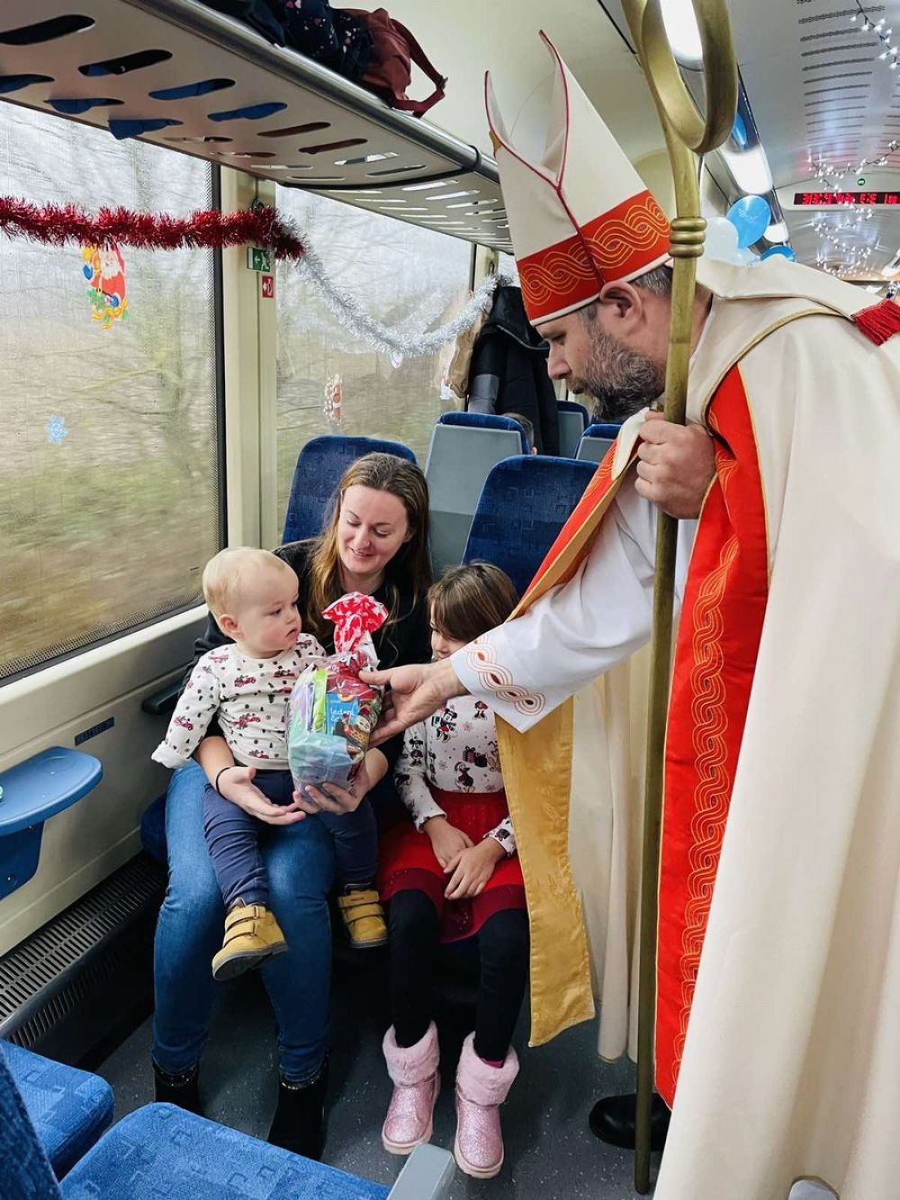 Božićni vlakić, osim darova, krio je još mnoga iznenađenja za male putnike čijem veselju nije bilo kraja kada su ih u kompoziciji dočekali vilenjaci te Sveti Nikola koji je mališanima podijelio darove!
