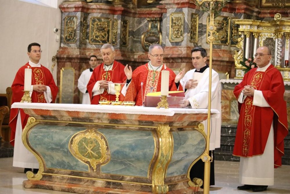 Središnje misno slavlje u 11 sati u varaždinskoj katedrali na Cvjetnicu 24. ožujka predslavio je varaždinski biskup mons. Bože Radoš, uz koncelebraciju umirovljenog biskupa mons. Josipa Mrzljaka, kanonika Stolnog kaptola preč. Josipa Kopreka i biskupovog tajnika vlč. Marka Domitera.