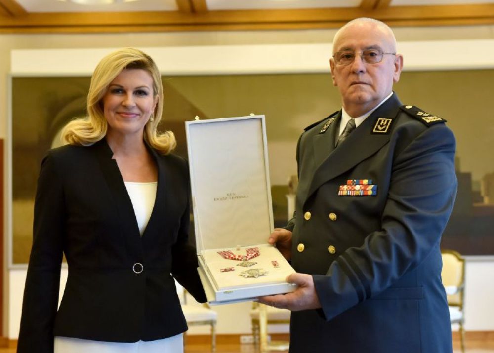 „Za zasluge u Domovinskom ratu odlikovani ste s više odlikovanja, a ovo odlikovanje neka Vam bude dodatni poticaj za Vaš doprinos u jačanju međunarodnog ugleda Republike Hrvatske i ugleda pobjedničke Hrvatske vojske“, kazala je Predsjednica u svom prigodnom govoru.