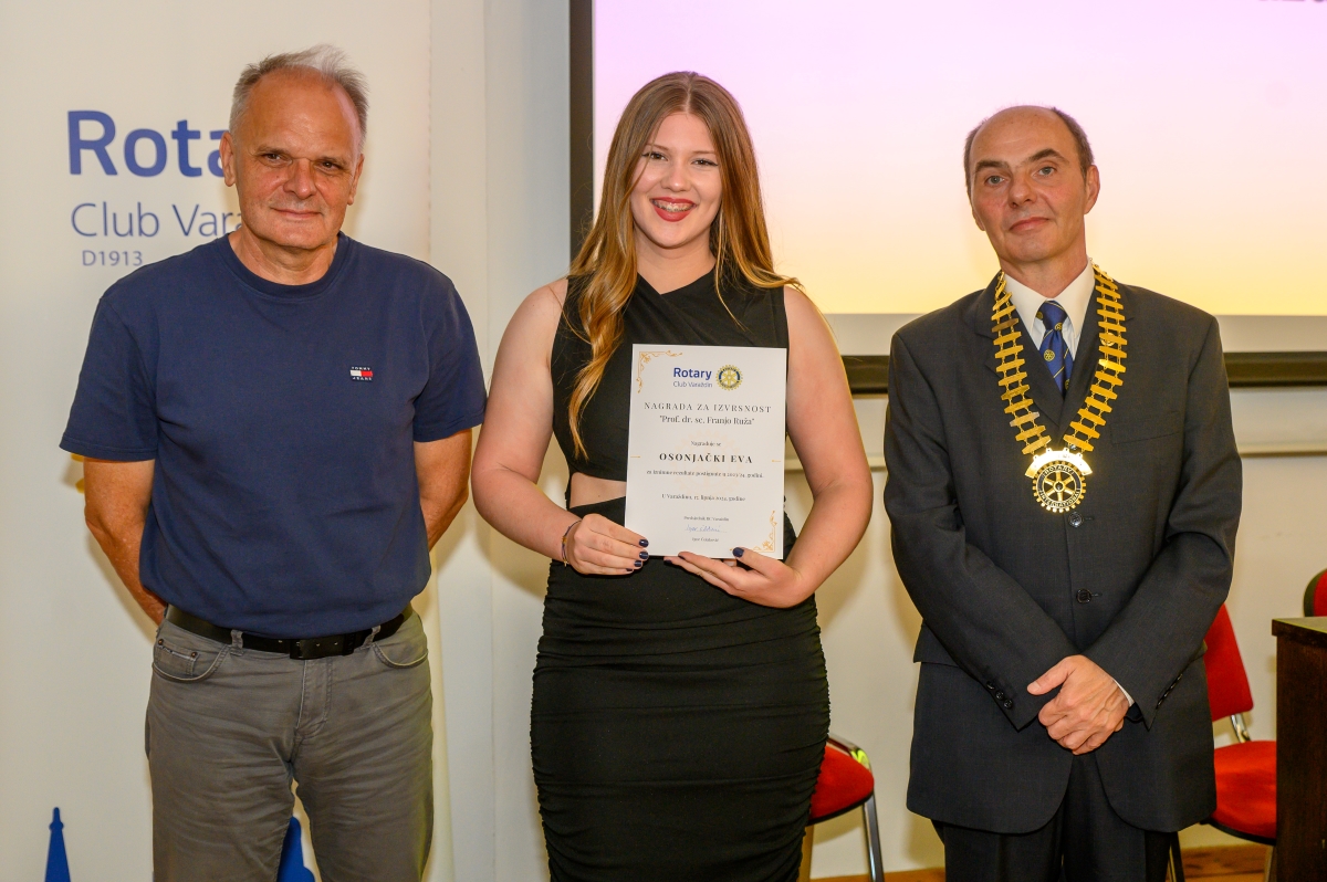 Nagrade za izvrsnost Rotary Club Varaždin u kategoriji najboljih učenika srednjih škola u Varaždinskoj županiji ove su godine dodijeljene: Zari Klein, Ozani Magotić, Sofiji Velkovskoj i Ivanu Vuku, učenicima Prve gimnazije, zatim Šimunu Ćosiću, Luki Gladoviću, Ivanu Horvatinu, Blažu Hrastiću i Josipu Kocijanu iz Elektrostrojarske škole Varaždin, Evi Osonjački, Uni Strbad, i Luciji Turk iz Glazbene škole Varaždin, Davidu Gečeku, Idi Kovačić , Heleni Rižmanić i Ani Kuči iz Gospodarske škole Varaždin te Teni Henec, Karlu Levaniću i Dinu Mlakaru Krasulji iz Graditeljske, prirodoslovne i rudarske škole Varaždin.