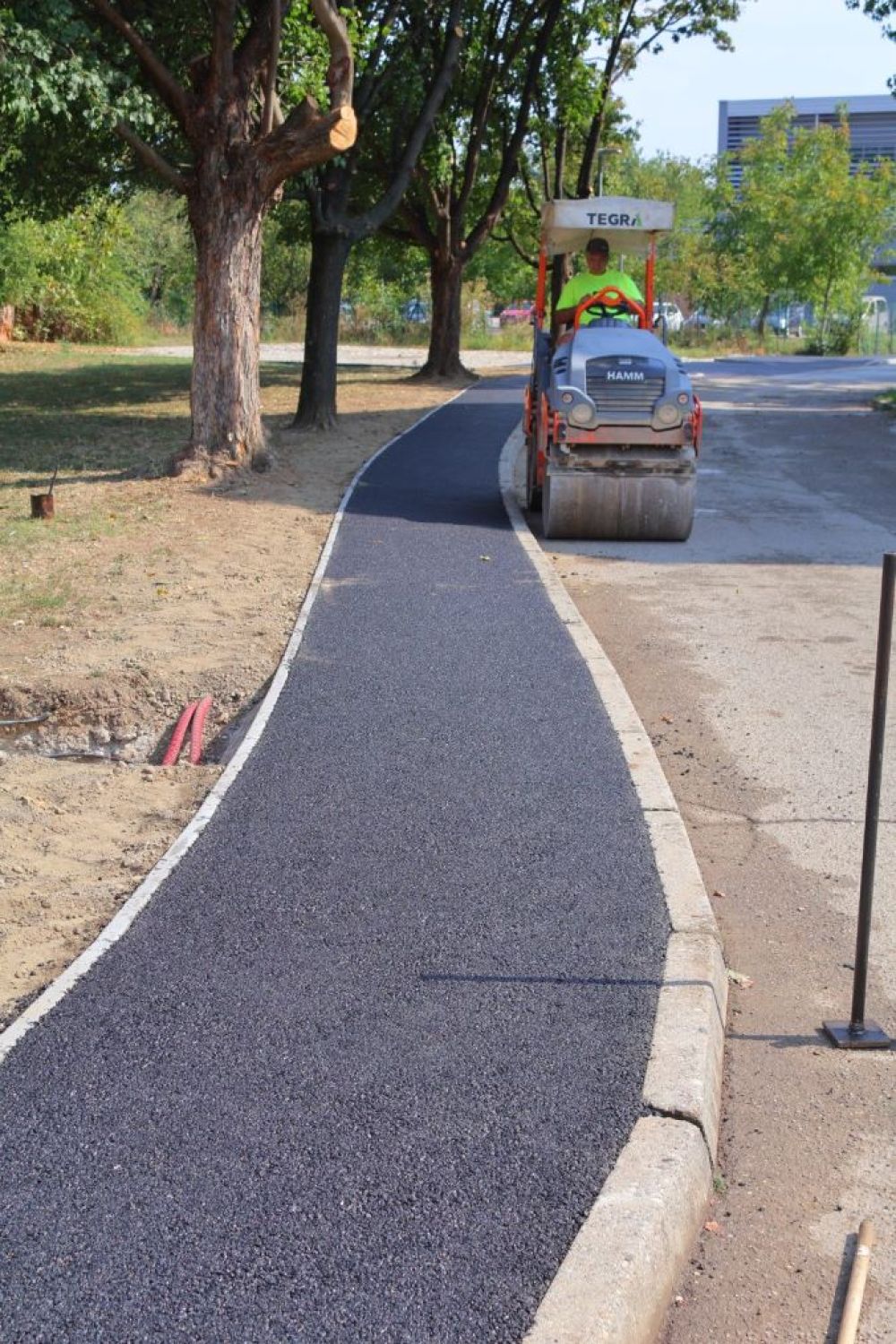 Osim toga, formirani su asfaltirani otoci i asfaltiran je pristup postojećem šljunčanom parkiralištu, čime se stvoreni sigurniji uvjeti za pješake. Cijelo područje bit će označeno prometnom horizontalnom i vertikalnom signalizacijom, kako bi se dodatno unaprijedila vidljivost i sigurnost. Staza je asfaltirana u sloju od 5 centimetara. Procijenjena vrijednost ovih radova iznosi oko 13 tisuća eura, a projekt se provodi s ciljem stvaranja sigurnijeg okruženja za sve pješake, posebice učenike koji svakodnevno koriste ovu stazu.