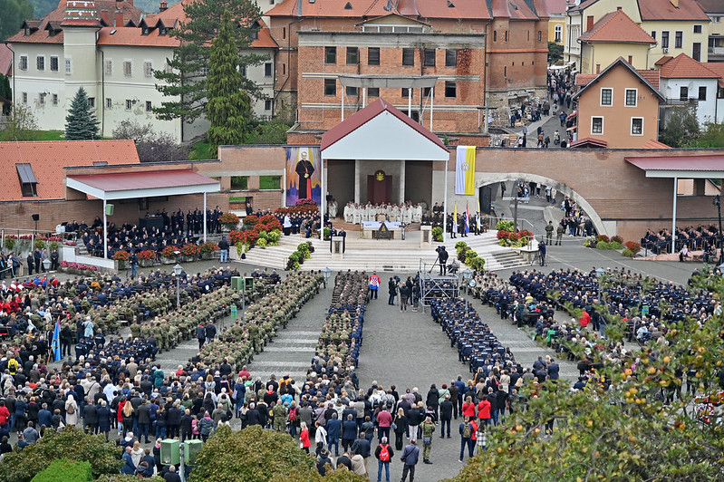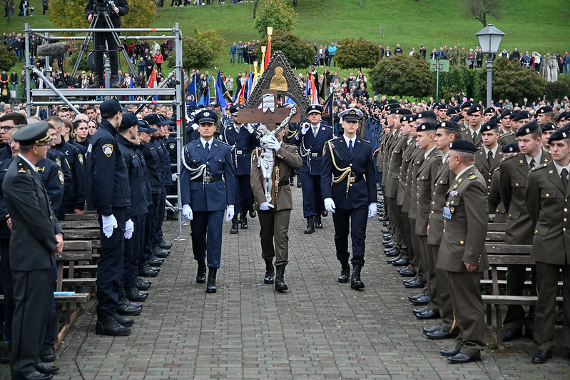 U Nacionalnom svetištu Majke Božje Bistričke u Mariji Bistrici danas je, u nedjelju 6. listopada 2024., održano 32. nacionalno hodočašće Hrvatske vojske, policije i branitelja. Na tradicionalnom hodočašću sa svojim obiteljima sudjelovali su pripadnici Hrvatske vojske, policije, hrvatski branitelji, pripadnici civilne zaštite, Hrvatskog Crvenog križa, vatrogastva, povijesnih postrojbi i drugi. Zapovjednik 32. hodočašća u Mariju Bistricu bio je zamjenik zapovjednika Hrvatske kopnene vojske brigadni general Valentin Skroza, a zamjenik zapovjednika, pomoćnik zapovjednika Zapovjedništva za intervencije MUP-a Marko Brtan. FOTO:MORH/T. Brandt: