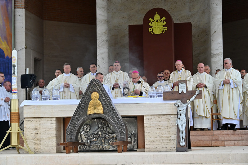 "I kao što se u obitelji u našim naravnim odnosima isprepliću tri riječi: molim – hvala – oprosti, tako se i u molitvi pred licem Božjim uzdiže molitveni troplet naše prošnje, zahvaljivanja i kajanja. Taj troplet nalazimo u mnogim simbolima naše hrvatske kulture i naših nacionalnih obilježja", rekao je između ostalog msgr. Bogdan. "Ovim hodočašćem svjedočimo da je naš pogled usmjeren prema nebeskoj Majci. U svojim rukama i džepovima nosimo njezinu krunicu, baš kao i u godinama Domovinskog rata. Naš pogled usmjeren je i prema njezinu sinu Isusu Kristu. Samo pred njima hrvatski vojnik, policajac i hrvatski branitelj prigiba svoje koljeno, samo pred njima otvara svoju dušu i izriče molitvu za sebe, svoju obitelj, svoje roditelje, za svoju djecu, svoje bližnje, za svoju Domovinu", zaključio je vojni ordinarij.