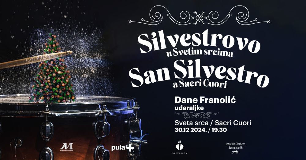 Silvestrovo u Svetim srcima dugogodišnji je koncertni događaj koji građanima i njihovim gostima nudi zanimljiv recital klasične glazbe večer uoči Silvestarske. U reprezentativnom Muzejsko-galerijskom prostoru Svetih srdaca u Puli nastupit će mladi hrvatski udaraljkaš Dane Franolić kroz zvukove marimbe i malog bubnja, a s repertoarom od Bacha do suvremenih autora. Koncert počinje u 19.30 sati, ulaz je slobodan.