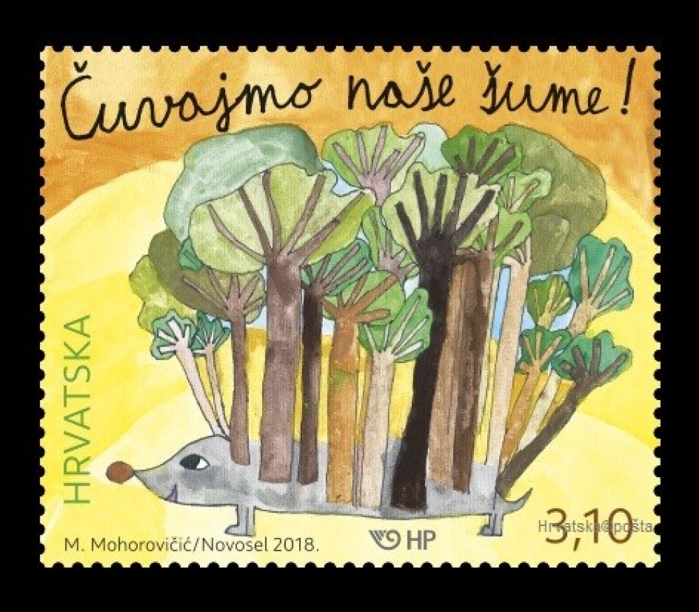 Hrvatska pošta pustit će 17. rujna 2018. u optjecaj novu dječju poštansku marku „Čuvajmo naše šume“. Motiv prigodne dječje poštanske marke je maštoviti prikaz ježa kao čuvara šume. Autorica prigodne marke je Lidija Novosel, dizajnerica iz Zagreba, dok je autorica predloška Marina Mohorovičić, učenica 2. razreda Osnovne škole Viktora Cara Emina iz Lovrana. Marke su tiskane u višebojnom offsetnom tisku i u nakladi od 100 000 primjeraka. Nominalna vrijednost nove dječje marke iznosi 3,10 kuna, a marka je izdana u arku od 20 maraka. Hrvatska pošta izdala je i prigodnu omotnicu prvog dana (FDC). U Poštanskom uredu 10101 Zagreb (Jurišićeva 13) 17. i 18. rujna 2018. bit će u uporabi žig prvog dana. Sve poštanske marke, kao i ovo prigodno izdanje mogu se kupiti i u internetskoj trgovini Hrvatske pošte, www.epostshop.hr.